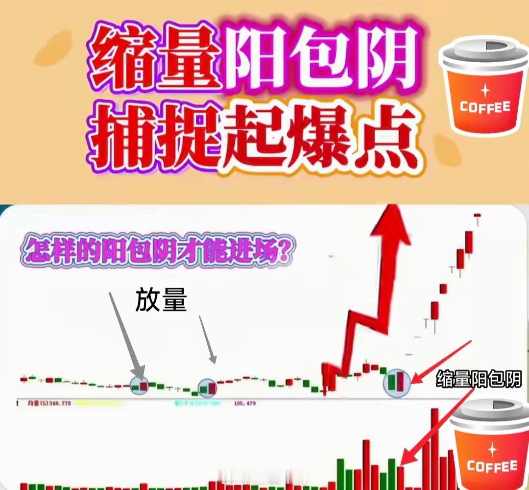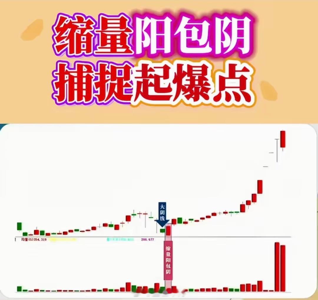 缩量阳包阴模型1。下跌或者横盘过程中出现大阴线2。次日收出阳包阴收盘超过阴线高点3。阳线为缩量阳线,当天尾盘进场后语——“1”中交代是下跌📉或横盘,非上涨📈过程中,曾经说过低位缩量涨停破前高好,keneng🈶异曲同工之妙第二,就是阴线相对于阳线是放量,但它不是近期高量至于灵不灵,准不准,在实际中多观察,多验证!不要无脑上↑,亏损了和谁说理去。本无一招鲜,做到概率上大赚小亏,无数次的交易慢慢积累而得,这些根本。最大的确定性就是不确定,否则一场交易就财富自由了。