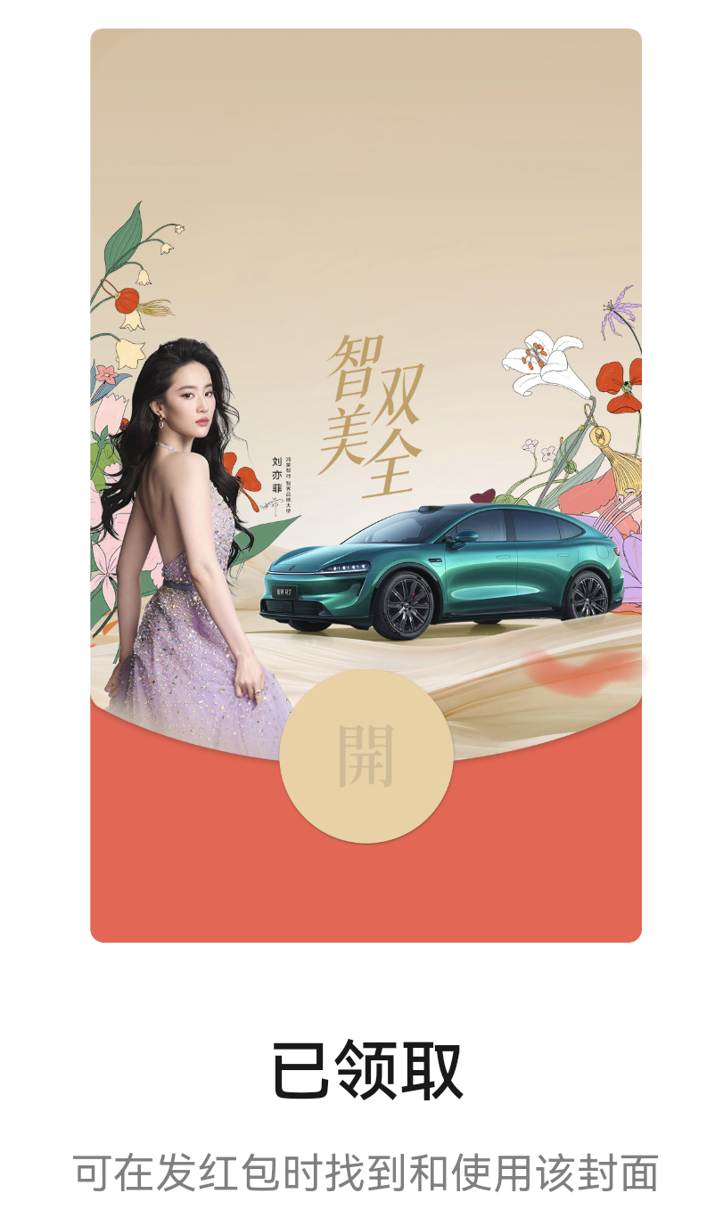 智界汽车&刘亦菲红包封面补货啦!没领到的速度来刘亦菲智界大有可玩刘亦菲鸿蒙智行智界品牌大使