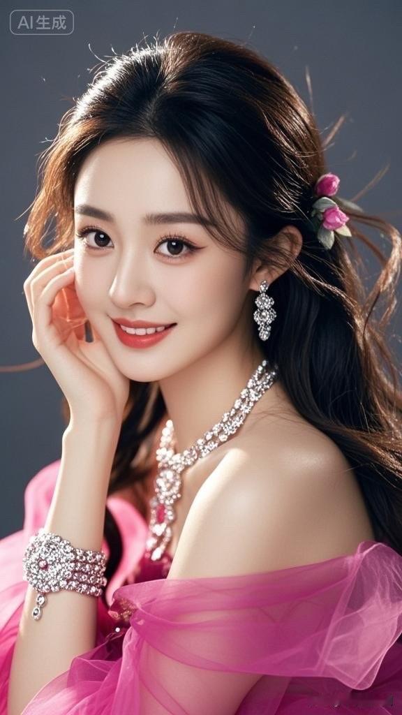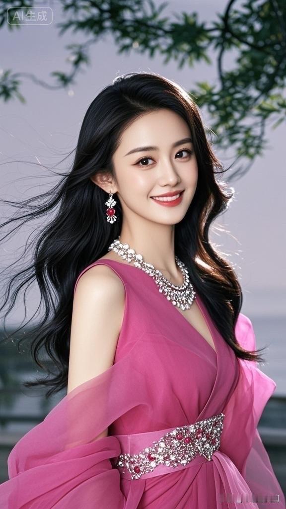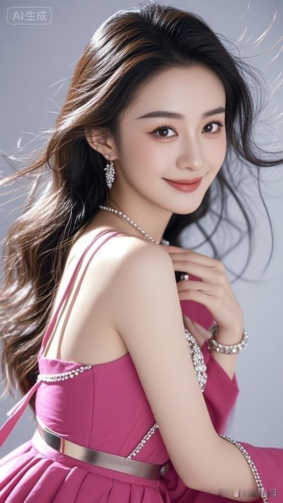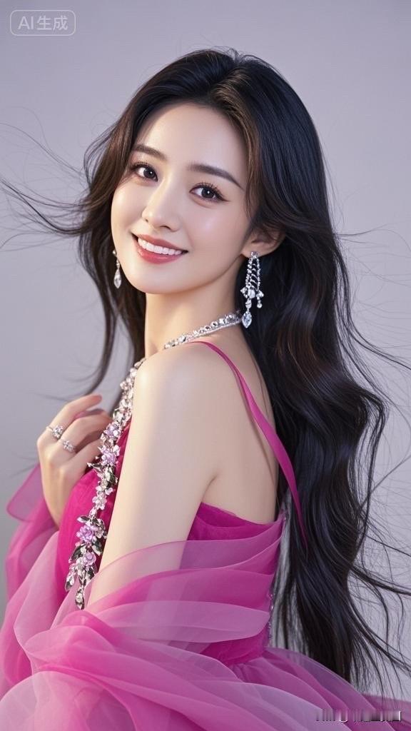 甜美笑容,黑发飘逸,AI生成的完美形象!