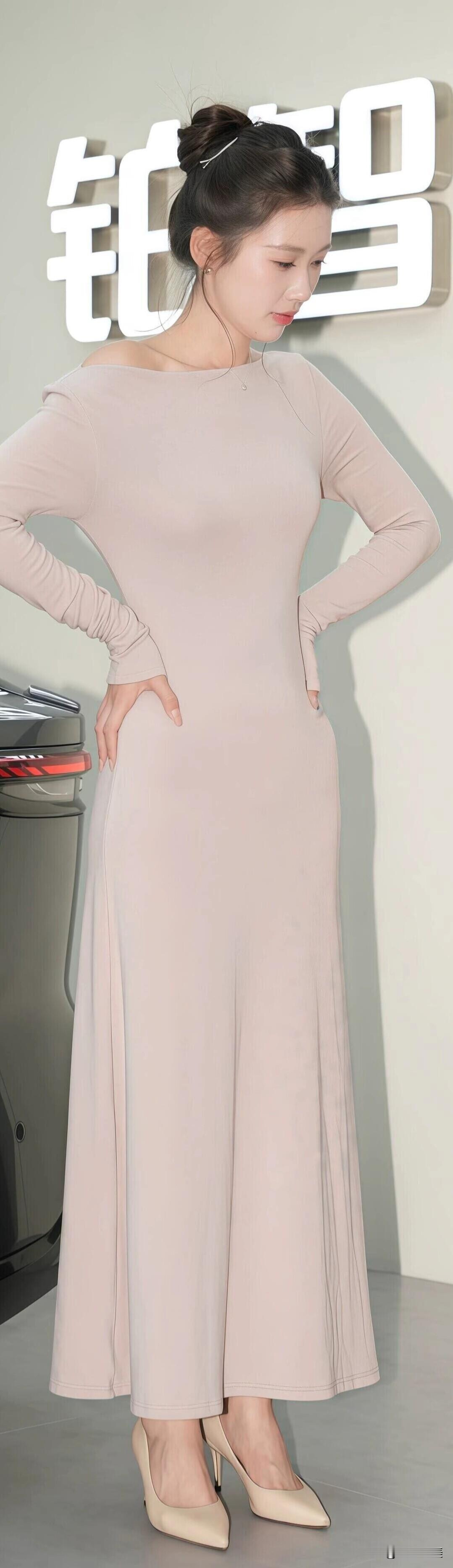一字肩长裙,温柔又显气质,搭配同色系高跟鞋,优雅感直接拉满,日常通勤或正式场合都很合适~