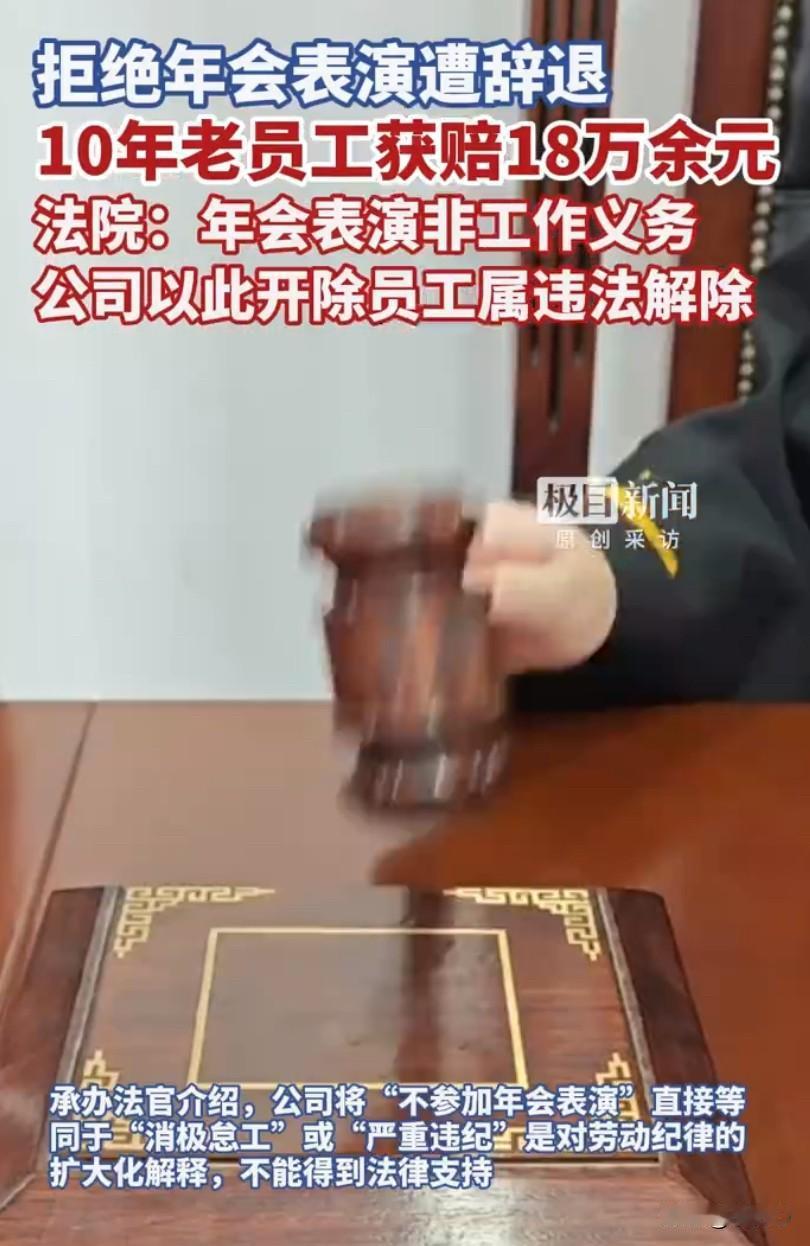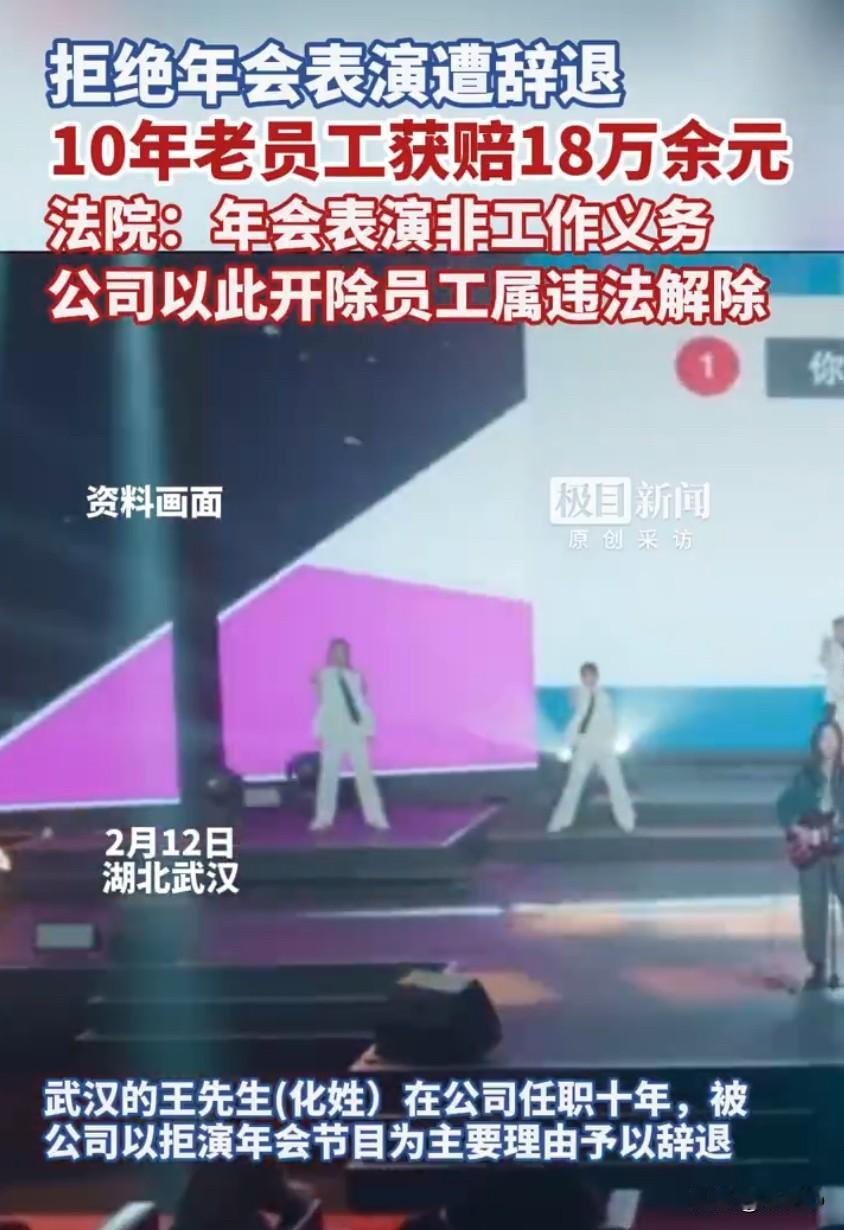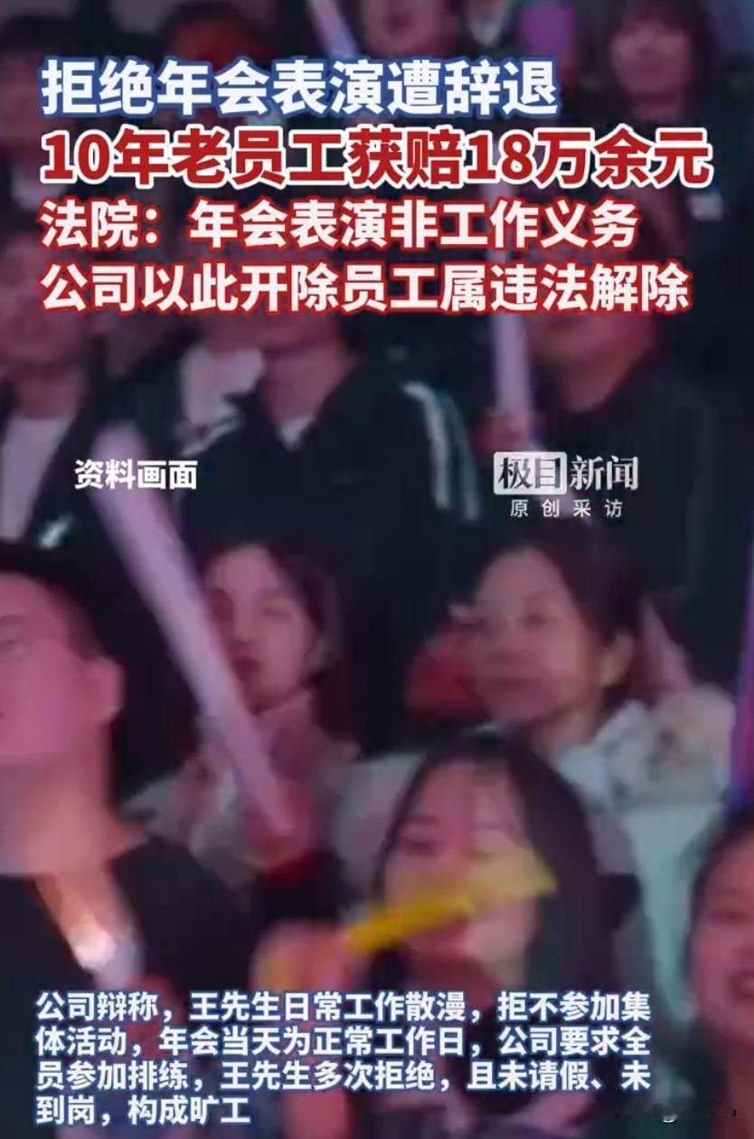 一名在公司工作十年的男子,因为不愿意参加年会表演,竟然被公司以此为主要理由辞退,这件事在网上引发大量热议,不少打工人都表示深有同感,觉得职场里类似的强制表演实在让人无奈。这位王先生在单位兢兢业业干了十年,本来只是安心做好本职工作,没想到公司突然要求他上台表演节目,他实在不想参与,便明确拒绝了公司的安排,可就是这个正常的选择,却给自己招来了被开除的结果。公司给出的辞退理由,主要就是他不服从安排、拒绝年会节目表演,还把这件事定性为严重违纪,这样的处理方式让王先生难以接受,他认为自己只是不想上台表演,并没有耽误工作,更没有违反劳动纪律,公司这样做完全不合理。为了维护自己的合法权益,王先生将公司告上法庭,要求认定公司属于违法解除劳动合同,并支付相应赔偿。当地法院一审审理后认为,年会表演并不属于员工的法定工作义务,和岗位职责没有关系,公司以此为主要理由辞退员工,缺乏法律依据和合理性,已经构成违法解除劳动合同,一审判决公司支付赔偿金等各项费用合计20万余元。公司对一审判决不服,提起上诉,经过二审法院调解,双方最终达成一致,由公司向王先生支付包括违法解除劳动合同赔偿金、工资差额、未休年假工资等在内的各项损失,总共18万余元,这件事也算是给了当事人一个公道。这件事曝光后,很快登上热搜,网友们一边倒地支持维权员工,大家都说,年会本来是企业为了增强凝聚力举办的娱乐活动,应该本着自愿原则,而不是强制要求,更不能和饭碗挂钩,很多人都有过被公司逼着唱歌、跳舞、演小品的经历,尴尬又无奈,甚至还要占用下班时间反复排练,严重影响个人生活。承办法官也专门提醒,对于绝大多数岗位来说,表演节目既不是法定职责,也不在劳动合同约定的工作内容里,公司不能把年会表演当成工作任务强制要求员工完成,更不能因为员工拒绝就随意辞退,否则就要承担违法解除的法律责任。同时,公司的规章制度也要符合法律规定、经过民主程序并向员工公示,才能作为管理依据,不能随意设定不合理的要求。这起案件也给不少企业提了个醒,管理要合法合规,尊重员工的意愿和权利,不能搞强制文化,打工人也从中看到了维权的底气,面对不合理要求,完全可以勇敢说不,用法律保护自己的合法权益。 来源:极目新闻