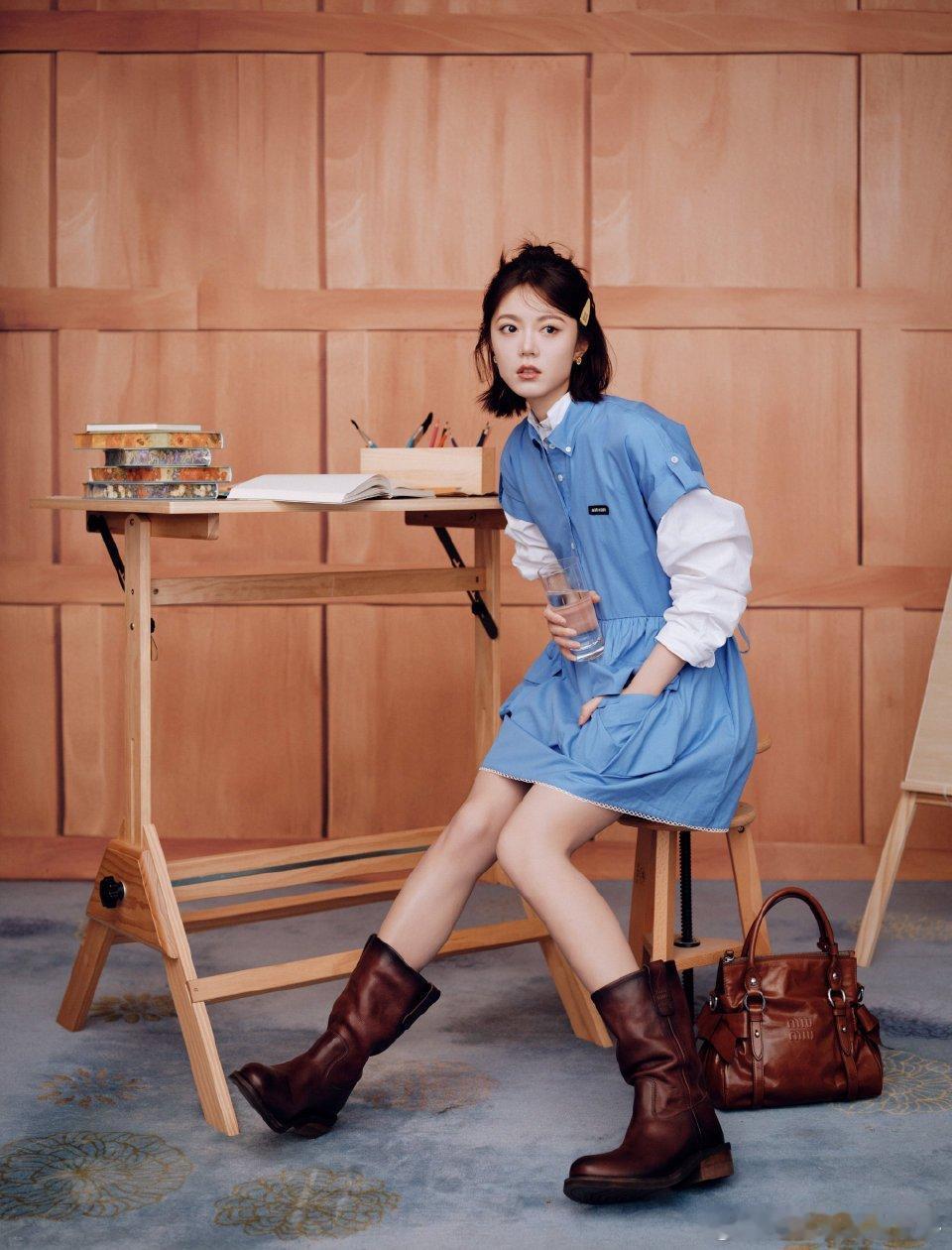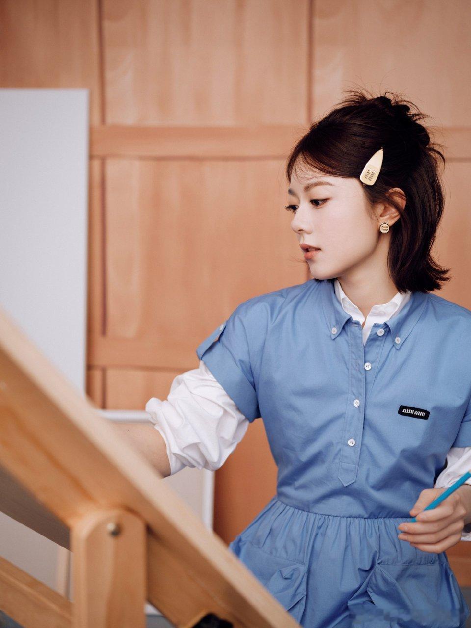 赵今麦蓝调文艺范赵今麦我的靠谱学姐 赵今麦蓝色学院风连衣裙清新感拉满,半丸子头灵动软萌,文艺气质扑面而来,妥妥艺术学校里温柔又靠谱的学姐,让人一眼就心动。