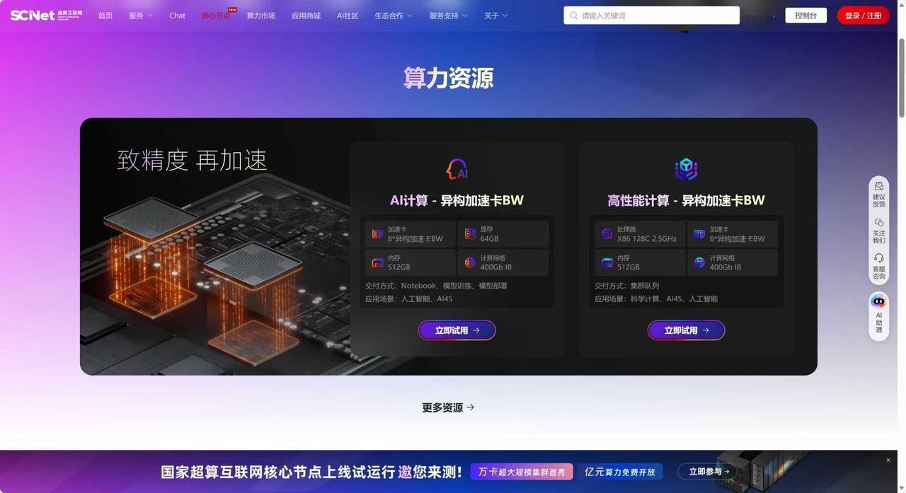 最近好多人找我聊,不管是刚接触AI、想试试水的普通人,还是小团队的负责人,都在反复问同一个问题:AI现在这么火,到处都是相关的消息,我们没大厂的资金、没足够的资源,到底该怎么上车?其实我每次都跟他们说,别瞎琢磨、别硬扛,顺势而为就好,而最近国家超算互联网全面开启邀测,说白了,就是给咱们这些非头部玩家,递来的一把最实在的上车钥匙。 我特意抽时间看了下这次的邀测计划,最难得的就是务实,完全没搞那些虚头巴脑的宣传,也没有一刀切地搞统一标准,而是实打实根据不同人群、不同项目的需求,分成了万卡、千卡、百卡三个清晰的档位,特别贴合咱们圈内人的实际情况。 说实话还挺感慨的,在这行待久了,最清楚以前的算力有多“金贵”,基本就是大厂的专属资源,离普通人、小团队很远,很多好想法都因为没算力只能搁置。现在通过国家超算互联网,算力真的在慢慢变成一种普惠资源过年正好有空,我打算也去申请尝个鲜,看看实际用起来到底怎么样。 国产大模型 国产算力