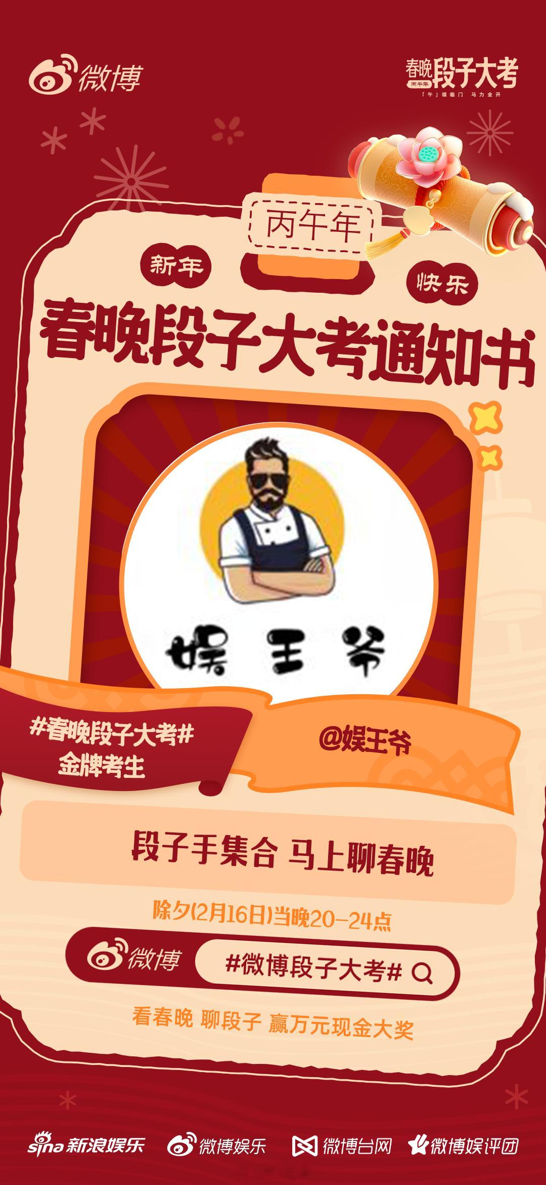 春晚段子大考活动开启!段子组长前来报道!除夕晚上20点正式开考,春晚我们不见不散!