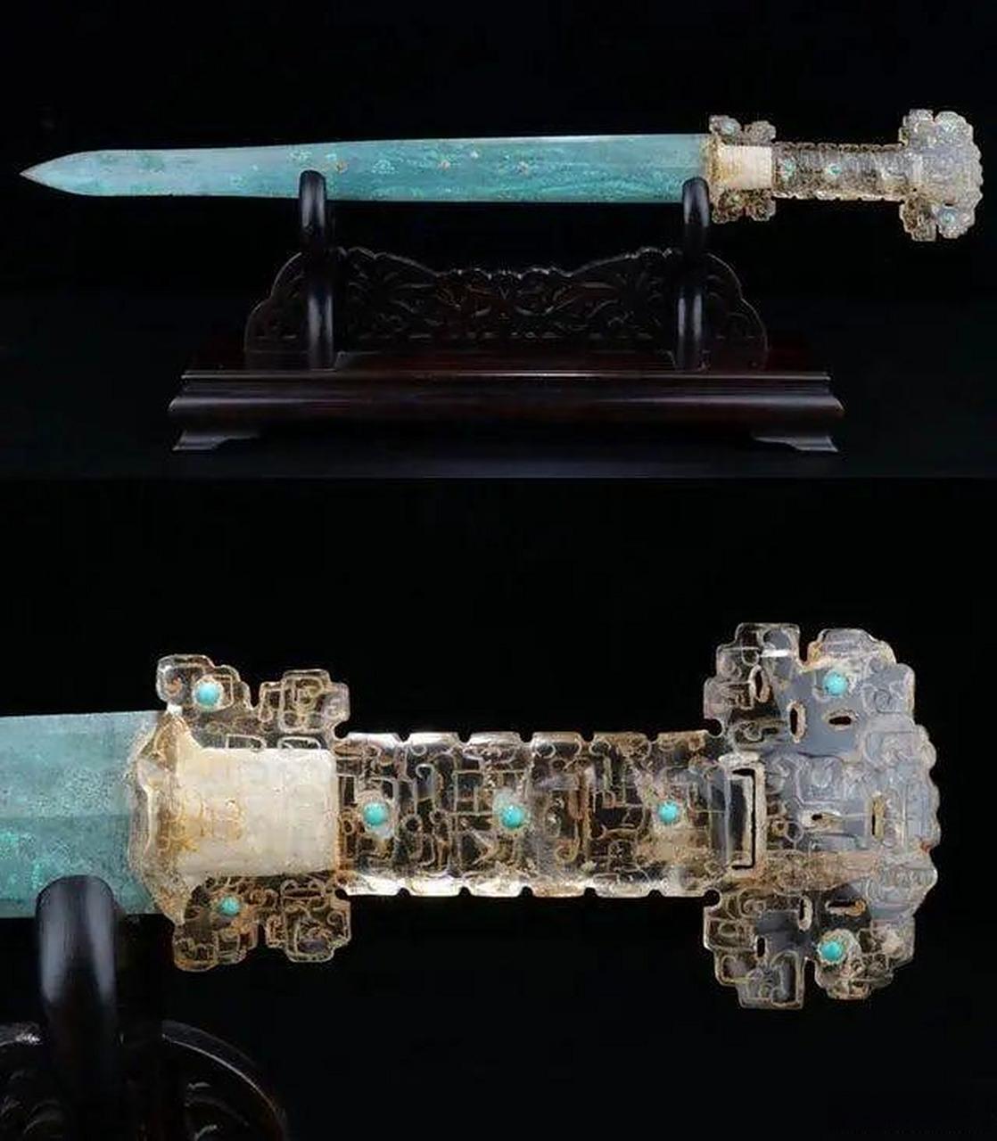 一把让老外惊呼“外星科技”的“战国水晶剑”,几年前出现在国外拍卖行。剑身是薄如蝉翼的蓝绿色铜锈,剑柄竟由整块水晶雕琢而成! 乍一看,这把水晶剑“美”得让人窒息! 从网络上流传的图片来看,聚光灯下,一柄剑静静躺在紫檀木架上 —— 剑身是一层薄如蝉翼的蓝绿色铜锈,像被海水浸过的翡翠;剑柄却由整块水晶雕琢而成,镂空的兽面纹里嵌着黄金丝与绿松石,在灯光下折射出冷冽的光。 “这是公元前 4 至 2 世纪的战国青铜剑,剑柄是天然水晶,镶嵌了黄金和绿松石。” 拍卖师的声音带着刻意的平静,却压不住台下的窃窃私语。 有人掏出手机拍照,有人凑到玻璃前,试图看清水晶里的冰裂纹。一位白发苍苍的老收藏家喃喃自语:“太干净了,不像埋了两千年的东西……” 而在屏幕另一端的中国,无数人盯着这张照片彻夜难眠。 这不仅仅是一把剑,它像一把钥匙,瞬间打开了中国人刻在基因里的 “宝剑执念”。从孩童时听的武侠故事,到课本里 “卧薪尝胆” 的典故,我们对剑的情感,早已超越了兵器本身,成了一种刻在骨子里的文化图腾。 这把剑后来的命运,像它的水晶剑柄一样透明又神秘。 它被一位匿名买家以未公开的价格拍走,从此再未公开露面。江湖传闻它被锁进了加州某富豪的私人保险库,也有人说它辗转到了欧洲的古董商手里。 而在国内的收藏圈,关于它的讨论从未停止…… 有人说它是 “战国第一神兵”,有人骂它是 “现代仿品”,还有人翻遍考古报告,想找到它的 “孪生兄弟”。 当这把剑的照片在国内社交平台刷屏时,最炸锅的评论是:“这绝对是外星技术!战国人怎么可能把水晶雕成这样?” 质疑声,并非空穴来风。 要知道,水晶的莫氏硬度高达 7,比玉石更脆,稍有不慎就会碎裂。而这把剑的剑柄,不仅有复杂的镂空兽面纹,还镶嵌了黄金丝和绿松石,工艺难度堪比在鸡蛋壳上雕花。 但考古学家们却淡定得多,因为他们早就见过更 “离谱” 的东西。 1990 年,杭州半山镇石塘村的战国墓里,出土了一只水晶杯。这只杯子通体透明,造型和现代玻璃杯几乎一模一样,刚出土时,考古队还以为是盗墓贼留下的水杯。 后来经鉴定,它是用整块天然水晶打磨而成,内壁光滑如镜,最薄处仅 3 毫米。 “战国人早就掌握了水晶加工技术,” 参与过水晶杯研究的专家说,“他们用青铜陀具配合金刚砂,像雕琢生命一样慢慢打磨。这把水晶剑的工艺,和水晶杯是同一个路子,只是更复杂。” 在山东淄博的齐国故城遗址,还出土过一套战国水晶组佩,由几十块水晶、玛瑙串联而成,每一块都切割得棱角分明,抛光得温润发亮。 这些文物证明,战国时期的工匠,早已能驾驭水晶这种 “坚硬又娇贵” 的材料! 这把战国水晶剑的出现,让人们想起了那些流传千年的宝剑传说。 《吴越春秋》里说,欧冶子为越王勾践铸了五把名剑:纯钩、湛卢、豪曹、鱼肠、巨阙。其中巨阙剑 “能穿铜釜,绝铁砺”,剑气能砍断马车。而干将莫邪的故事更悲壮:莫邪纵身跃入炉中,以身铸剑,才炼成了雌雄双剑…… 这些传说并非完全虚构。 1965 年,湖北江陵望山一号楚墓出土了越王勾践剑。这把剑埋在地下 2400 多年,出土时依然锋利无比,能轻松划破 16 层白纸。剑身上的黑色菱形暗纹,是用硫化铜工艺处理的,这种技术在当时堪称 “黑科技”。 而在河南淮阳的楚墓里,还出土过一把错金越王剑。 剑身上的错金铭文,像金丝织成的图案,历经千年依然熠熠生辉。这些宝剑,和那把水晶剑一样,都是战国时期 “兵器美学” 的巅峰之作! 关于这把水晶剑的真伪,收藏圈里吵得不可开交。 支持 “真品论” 的人认为——水晶剑柄的冰裂纹自然,铜锈的层次符合战国青铜剑的特征,镶嵌的黄金丝和绿松石也符合当时的工艺。而且,战国时期确实有高等级贵族使用水晶、黄金装饰兵器的记载,《周礼》里就提到过 “玉剑首”“金剑镡”。 反对 “真品论” 的人则指出——迄今为止,没有任何一座战国墓葬出土过如此 “炫目” 的剑器。已出土的战国青铜剑,剑柄多为玉、铜或木质,水晶剑柄极为罕见。而且,这把剑的来源不明,没有清晰的传承记录,很可能是现代仿品。 更有意思的是,有人发现这把剑的剑柄,和宝鸡青铜器博物院藏的一把镶绿松石宝剑几乎一模一样。 “这明显是照着宝鸡那把仿的,” 一位资深收藏家说,“只是把玉柄换成了水晶柄,显得更‘高级’! 而我们之所以如此在意它的真伪,是因为我们太渴望证明自己的历史有多辉煌。我们希望它是真的,因为那意味着我们的祖先,真的拥有过如此惊艳的文明! 遗憾的是,这把宝剑在网络能查到的资料少的可怜,它就如同昙花般一现,便再一次隐匿到了某个私人收藏家的手中…… 或许有一天,这把剑会再次出现在公众面前。如果它能回到中国的博物馆里该多好! 因为对中国人来说,剑从来都不是一件普通的器物,它是我们的根,我们的魂,是刻在骨子里的文化基因……