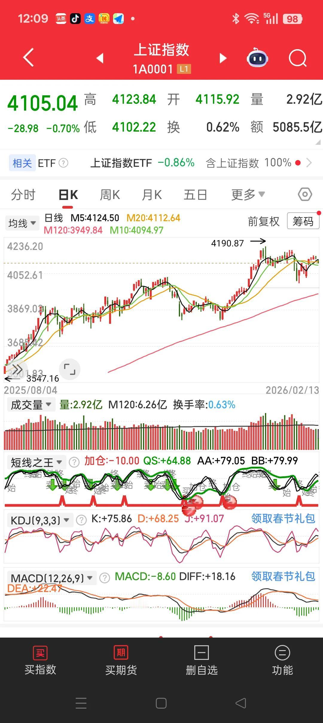 当前行情不用焦虑!大涨不可能,大跌亦不可能。当前行情突出的就是一个字,稳。 不管你是满仓轻仓还是空仓,都把心放在肚子里吧。大盘4100点附近,应该是接下来行情的新的起点。3月份要召开两会,方方面面都需要维稳,金融市场也需要维稳。我们要相信祖国,推动金融市场稳中发展的决心。 记录我的2026 财经