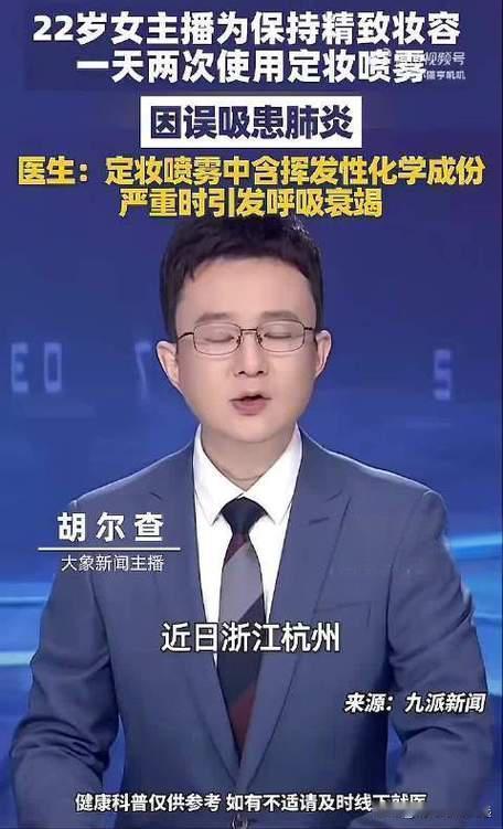 浙江杭州22岁主播小江,为了直播带货保持“完美妆容”,每天两次使用定妆喷雾,持续近半年,结果却付出了沉重代价——高烧不退,最终被确诊为间质性肺炎。这一诊断如晴天霹雳,让她和粉丝们都震惊不已。 事情并非偶然。医生指出,定妆喷雾中含有多种挥发性化学成分,长期反复吸入极易刺激甚至损伤肺部组织,导致肺部炎症甚至纤维化。小江的症状包括持续高烧、呼吸困难,正是典型的间质性肺炎表现。医生提醒,虽然定妆喷雾方便快捷,但绝不能忽视其潜在健康风险,尤其是频繁、长时间使用。 这背后反映出的是当下直播带货行业的一个隐形压力:主播们为了“镜头前的完美”,不得不长时间保持精致妆容,频繁使用化妆品,甚至牺牲健康。粉丝们看到的是光鲜亮丽的画面,却很少有人关注这些年轻人在背后承受的身体和心理负担。 更深层次地说,这也是整个社会对“美”的单一标准和对年轻人“高效输出”的无形逼迫。为了迎合流量和销量,主播们被迫成为“美丽机器”,忽略了身体的警告信号。小江的病例,提醒我们:健康永远是第一位的,任何为了短期利益而牺牲健康的行为,终将付出代价。 对于广大年轻人和直播从业者来说,这起事件无疑是一个警钟。我们呼吁行业加强对化妆品安全使用的宣传和监管,平台应关注主播的健康状况,社会也应给予更多理解和支持。美丽不应以健康为代价,直播带货的光环背后,更需要有温度和理性的守护。 你是否也曾为“完美妆容”而忽视了身体的声音?你是否觉得如今的“美丽压力”太沉重?欢迎留言,分享你的看法。健康与美丽,究竟该如何平衡?这不仅是小江的故事,更是我们每个人都可能面临的现实。