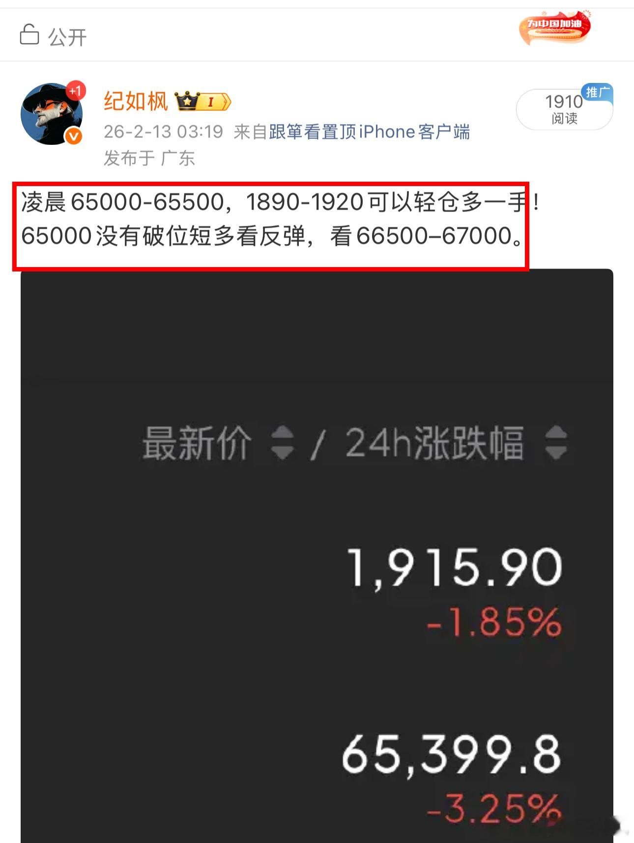 凌晨65000-65500,1890-1920可以轻仓多一手!65000没有破位