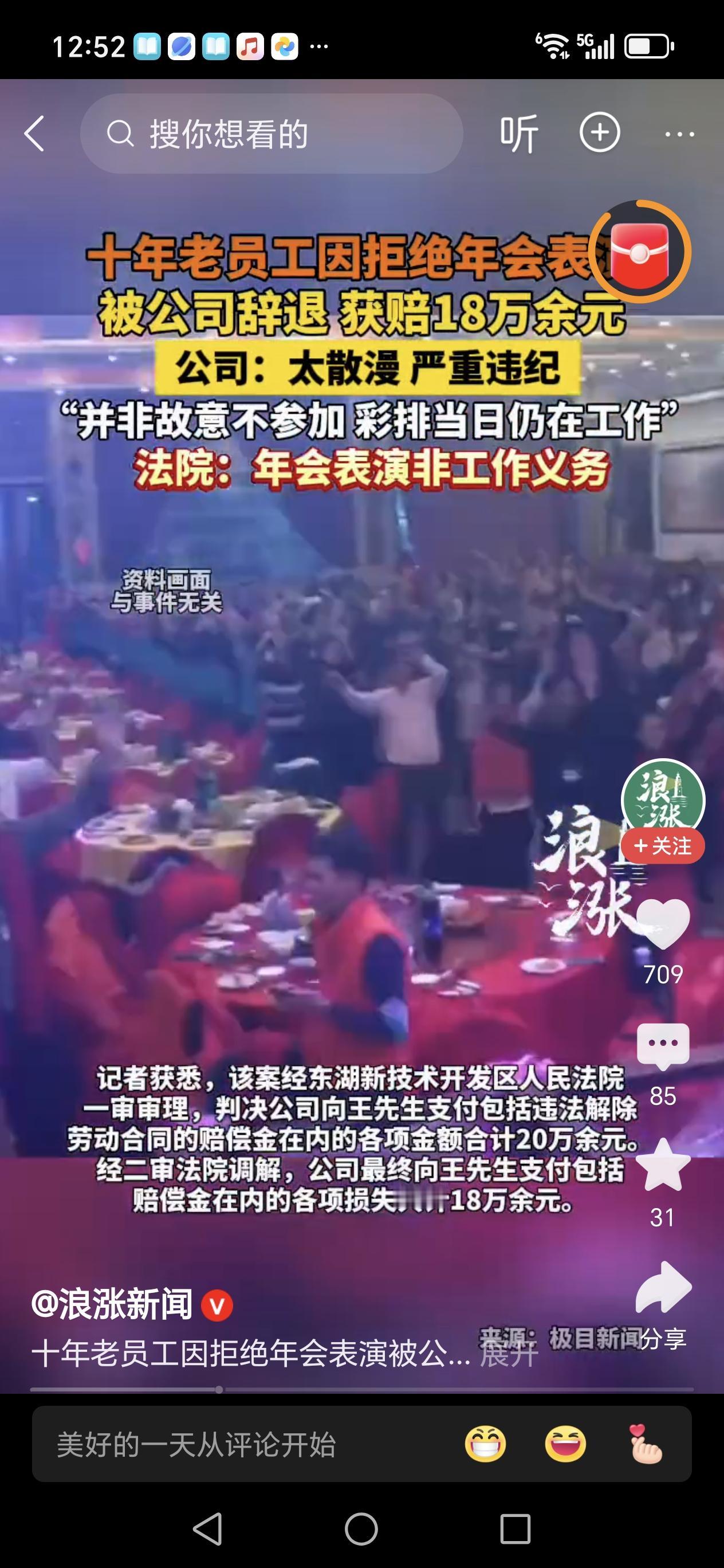 “拒演年会节目竟被开除?十年老员工怒告公司,法院判赔18万!打工人速看!” (素材来自网络) 春节刚过,一则职场维权案例在社交平台迅速引爆热议——武汉一名工作满十年的老员工,仅仅因为拒绝参加公司年会表演,竟被直接辞退!更令人震惊的是,公司给出的理由竟是“不服从集体活动安排”。这到底是企业文化建设,还是变相强制加班?法院最终一锤定音:年会不是工作,拒演不等于违纪! 事情发生在2025年底。王先生(化名)在武汉某科技公司勤勤恳恳干了整整十年,从未有过重大违纪记录。眼看春节临近,公司照例筹备年度盛会——年会。与往年不同的是,今年公司不仅要求全员参与,还强制安排部分员工登台表演节目。王先生因性格内向、不擅舞台表现,明确表示不愿参演。 公司随即以“多次拒绝参加年会彩排、缺席正式年会活动”为由,认定其“严重违反公司规章制度”,并在年会前夜直接将其移出所有工作群,次日便发出《解除劳动合同通知书》。更讽刺的是,彩排当天,王先生仍在工位上正常处理业务,却被公司视为“旷工”。 “我上班打卡、完成任务,凭什么因为不唱歌跳舞就被开除?”王先生愤而申请劳动仲裁。仲裁委支持了他的诉求,裁定公司支付违法解除赔偿金及欠薪共计20万余元。公司不服,起诉至武汉东湖新技术开发区人民法院。 庭审中,公司坚称年会是“团队建设的重要组成部分”,要求全员参与合情合理,并指责王先生“长期工作散漫、缺乏集体意识”。但王先生拿出考勤记录和工作日志证明:彩排当日他全程在岗,且年会并非劳动合同约定的工作内容。 承办法官胡秋俊一针见血地指出:“年会表演属于企业组织的文娱活动,本质是福利性、自愿性的企业文化建设,绝非劳动者法定义务。”他强调,除非岗位特殊(如公关、演艺类),否则普通技术、行政、研发等岗位员工,完全有权拒绝登台表演。 更关键的是,公司所谓的“规章制度”根本站不住脚。根据《劳动合同法》第三十九条,用人单位以“严重违纪”为由解雇员工,必须满足三个前提:制度内容合法、制定程序民主、已向员工公示并确认。而本案中,公司既未就“强制年会表演”条款召开职工代表大会讨论,也未让员工签字确认,制度本身就不具备法律效力! 一审法院果断判决:公司违法解除劳动合同,需赔偿王先生20万余元。公司上诉后,二审法院主持调解,最终双方达成协议——公司一次性支付18万余元赔偿金,为这场荒唐的“年会风波”画上句号。 此案一经曝光,立刻引发全网共鸣。无数打工人留言:“我们公司年会也要强制表演,谁敢说不?”“终于有人替我们出头了!”“企业文化不是道德绑架!” 法官胡秋俊特别提醒:判断年会是否“越界”,核心在于是否存在强制性。如果企业将参与年会与考勤挂钩、与绩效绑定、甚至以辞退相威胁,那就不再是“团建”,而是变相强迫劳动,涉嫌违反《劳动法》关于工作时间与休息休假的规定。 真正的企业文化,应建立在尊重个体选择的基础上。一场成功的年会,靠的是员工自愿参与的热情,而非行政命令的压迫。用“不表演就开除”来维系所谓“凝聚力”,只会寒了人心,毁掉信任。 这起案件也为所有企业敲响警钟:规章制度不能凌驾于法律之上。你可以倡导员工参与活动,但不能把娱乐变成义务;你可以鼓励团队精神,但不能以牺牲员工合法权益为代价。 对广大劳动者而言,此案更是维权教科书级别的范例。当公司以“不配合集体活动”为由施压时,请记住:你有权说“不”!保留好考勤记录、工作沟通截图、制度文件等证据,一旦遭遇不公解雇,果断申请仲裁——法律永远站在理性与正义的一边。 如今,王先生已重新找到工作。他说:“我不是反对年会,只是反对被强迫。希望我的经历能让更多人知道,打工人的尊严,不该在舞台上被践踏。” 18万元的赔偿,买的不只是金钱补偿,更是对职场边界感的捍卫。 年会可以热闹,但不能越界;团建可以有趣,但不能强制 ,尊重,才是最好的企业文化。单方面辞退员工 公司辞退赔偿