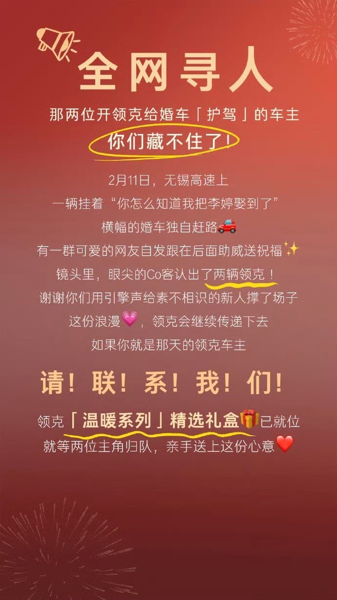 被车企暖到的瞬间 车友有温度,车企有态度!近日多起社会性事件正能说明此事:李想请浙江救人车主吃饭 ;领克汽车在线寻人 ;别克发新婚随礼红包