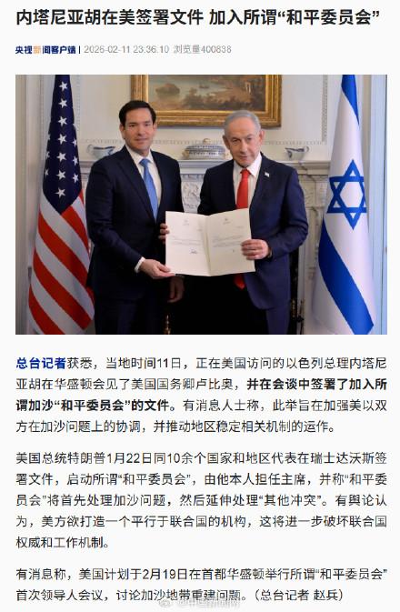 其实所谓“中东和平委员会”,就是美国➕以色列,然后起个好名字,趁机引诱别国加入,但只负责掏钱,凡是加入的,其实都很愚蠢。 正在美国访问的以色列总理内塔尼亚胡和卢比奥签署了加入所谓加沙“和平委员会”的文件。 这就是全部,就是美以和联胜,仅此而已,其他非要加入的,既不起作用,也无话语权,当然,需要定期交钱。