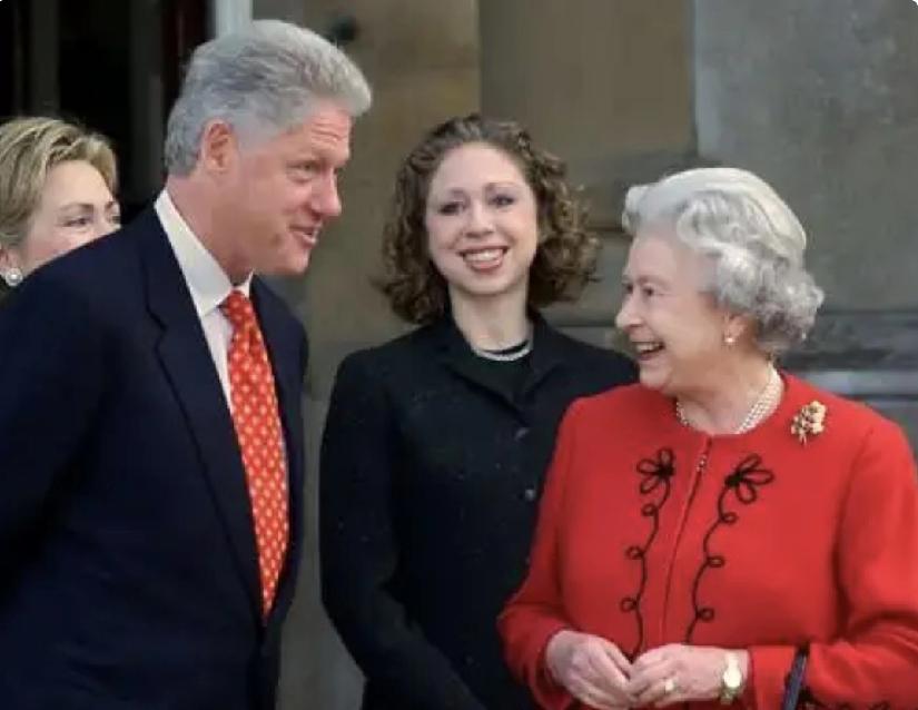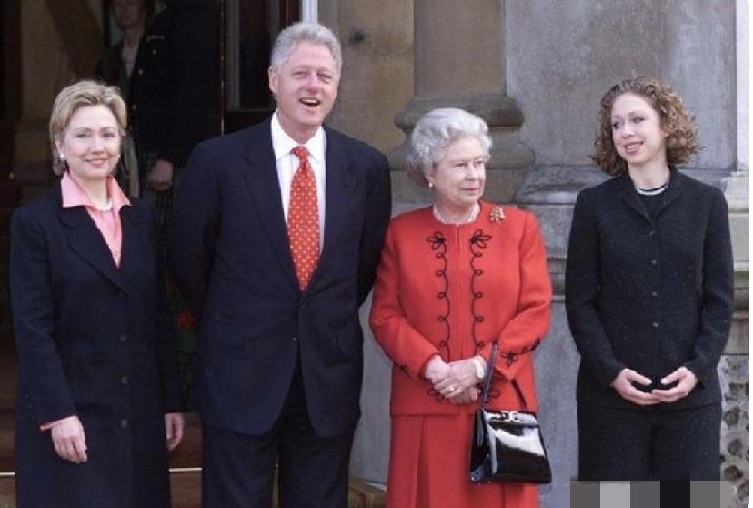 克林顿一家三口和英女王在一起,好像是一家人。 慈祥的女王一身红装,满面春风; 端庄的希拉里,如同贤惠的儿媳妇; 系着红领带的克林顿,和蔼又可亲; 切尔西穿着黑色套装显稳重,圆润的脸上都是甜美的笑容。 年轻就是好,年迈的女王很精神。