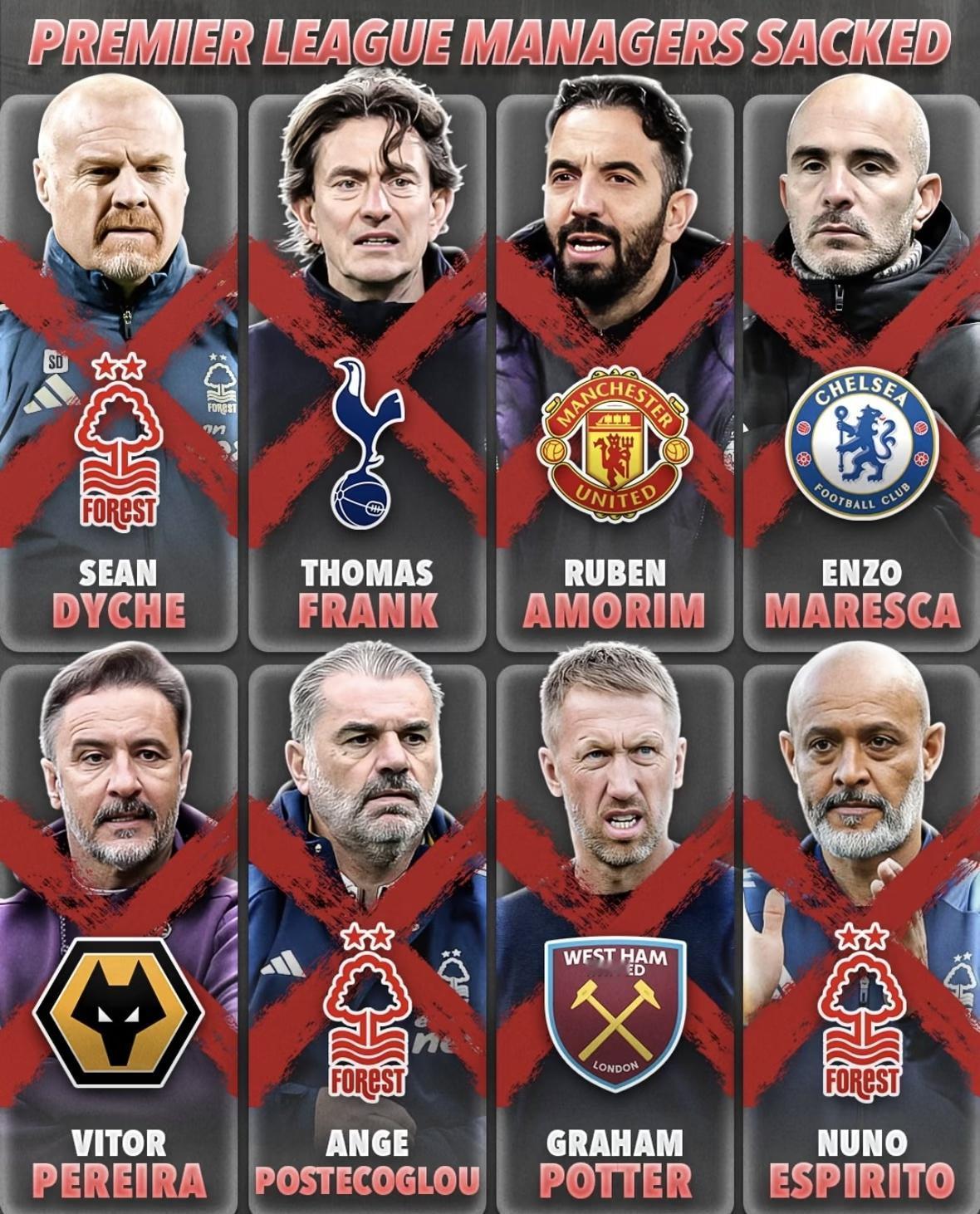 本赛季英超8位下课的主教练,你觉得谁最冤? 个人觉得森林的努诺和戴奇最冤了,就说戴奇吧,好不容易把森林带出保级圈,战绩也算不错,结果突然下课,要知道,热刺的弗兰克被骂了半个赛季,也才刚刚下课。 其次就是曼联的阿莫林了,好不容易把曼联带的有点起色,结果下课了,可谓壮志未酬身先死了。