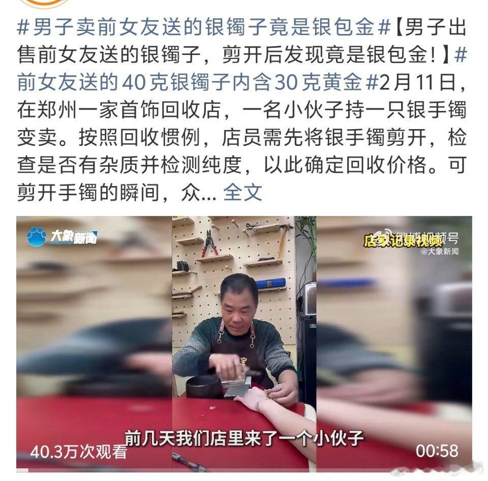 前女友送的40克银镯子内含30克黄金果然前任送的东西不是丢掉就是卖了前女友心里得觉得亏死