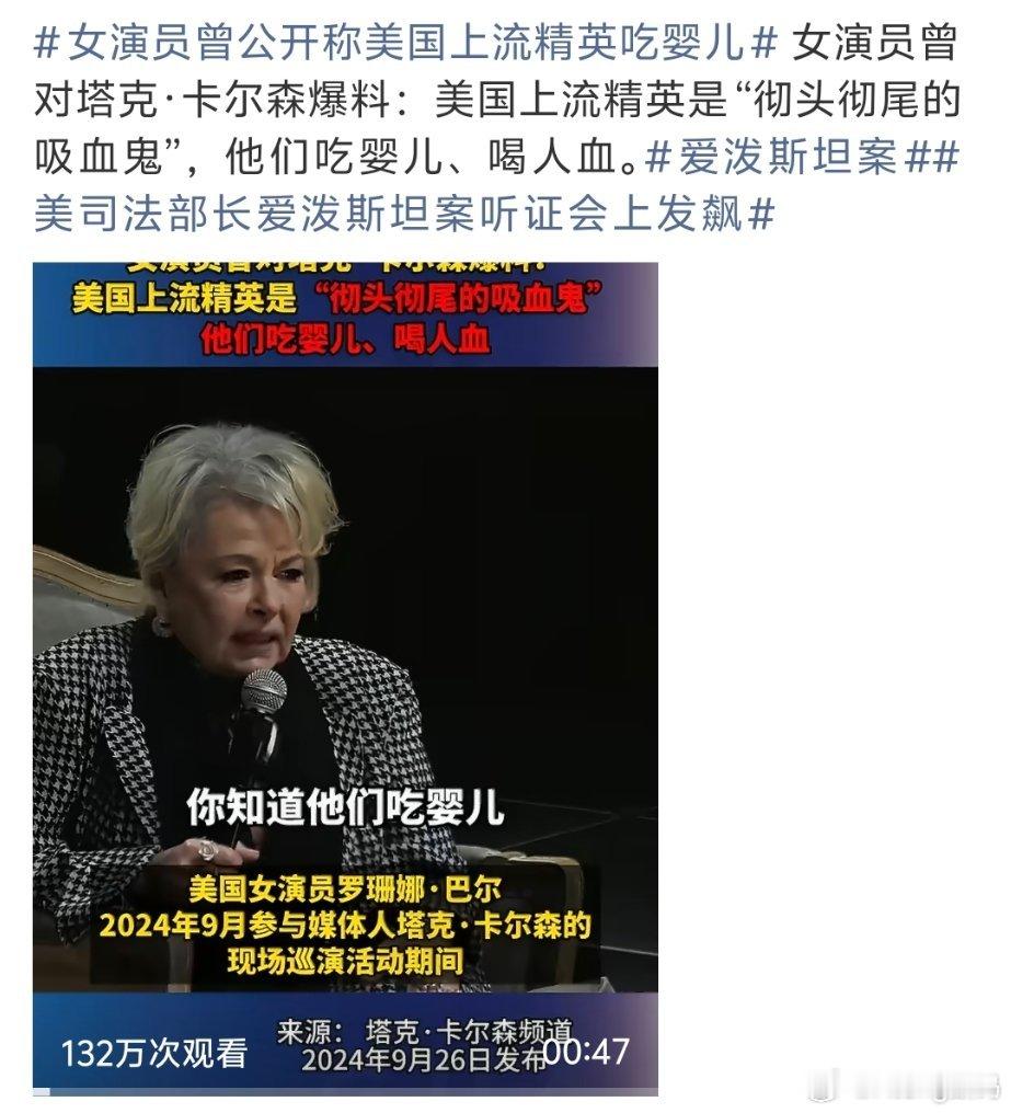 女演员曾公开称美国上流精英吃婴儿这哪是上流精英…财富的尽头就是扭曲吗