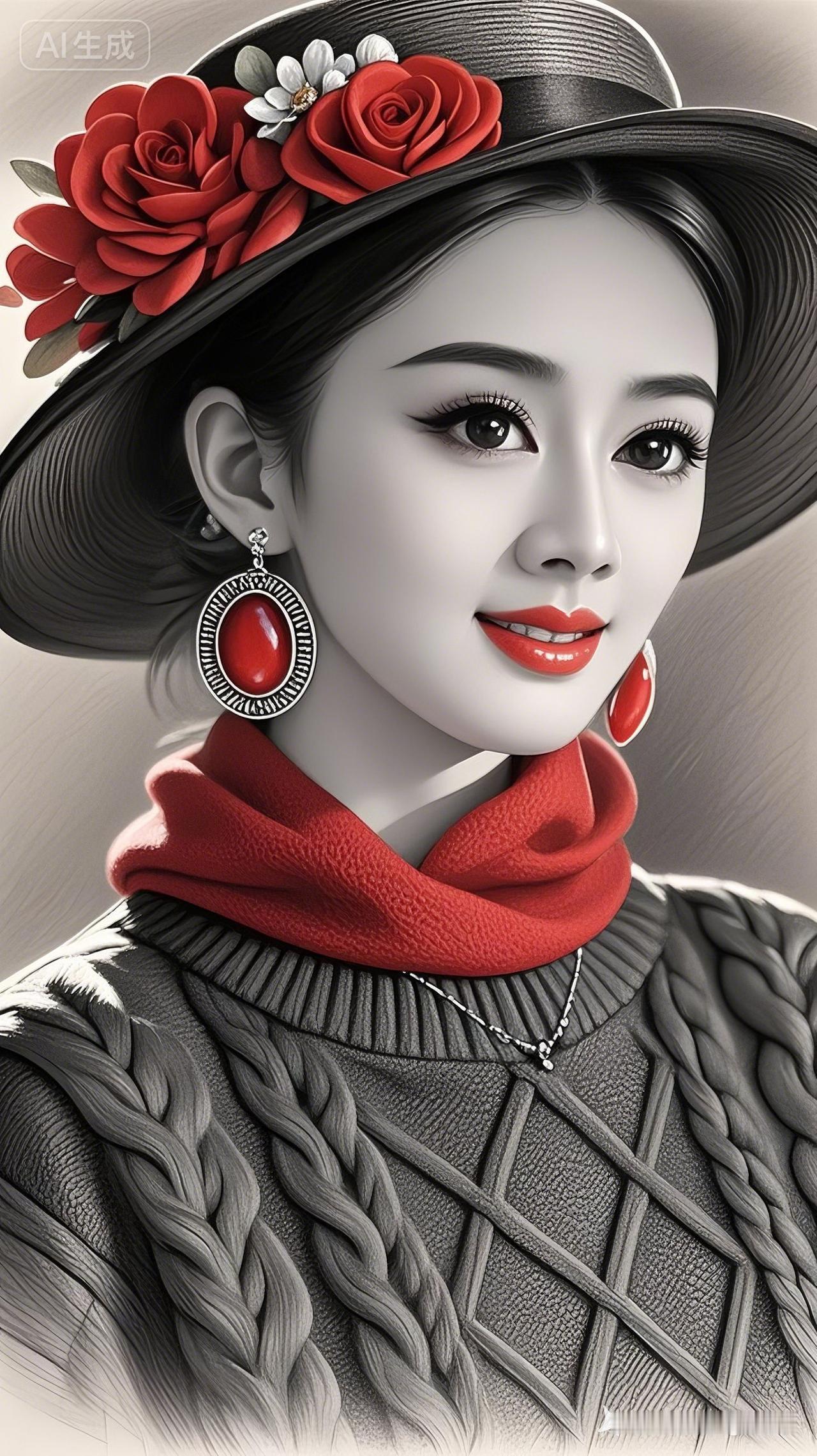 复古优雅,红唇与花饰的完美结合,尽显时尚魅力!