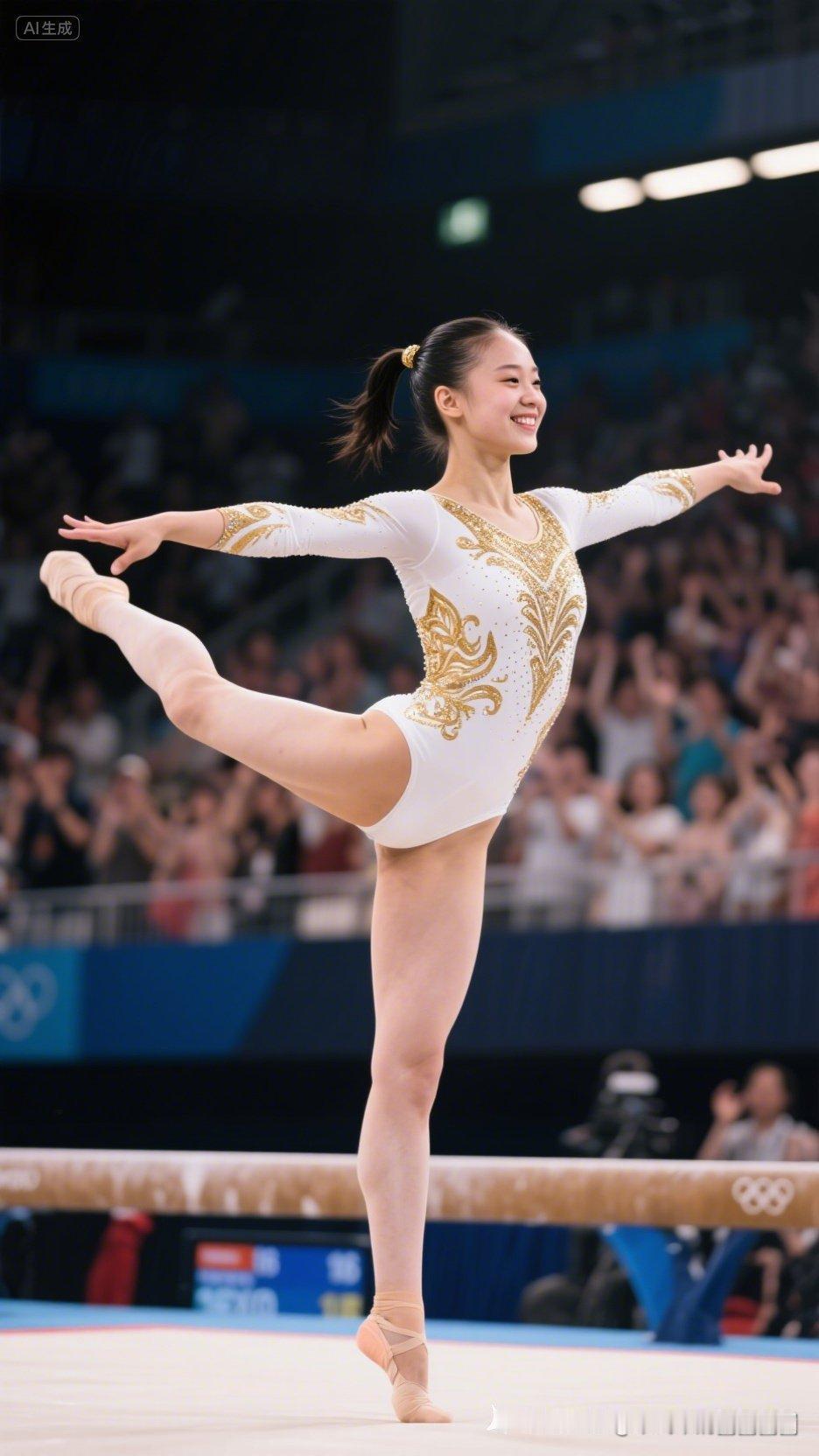 惊艳的体操动作,优雅的白色舞裙,完美展现力量与美感!