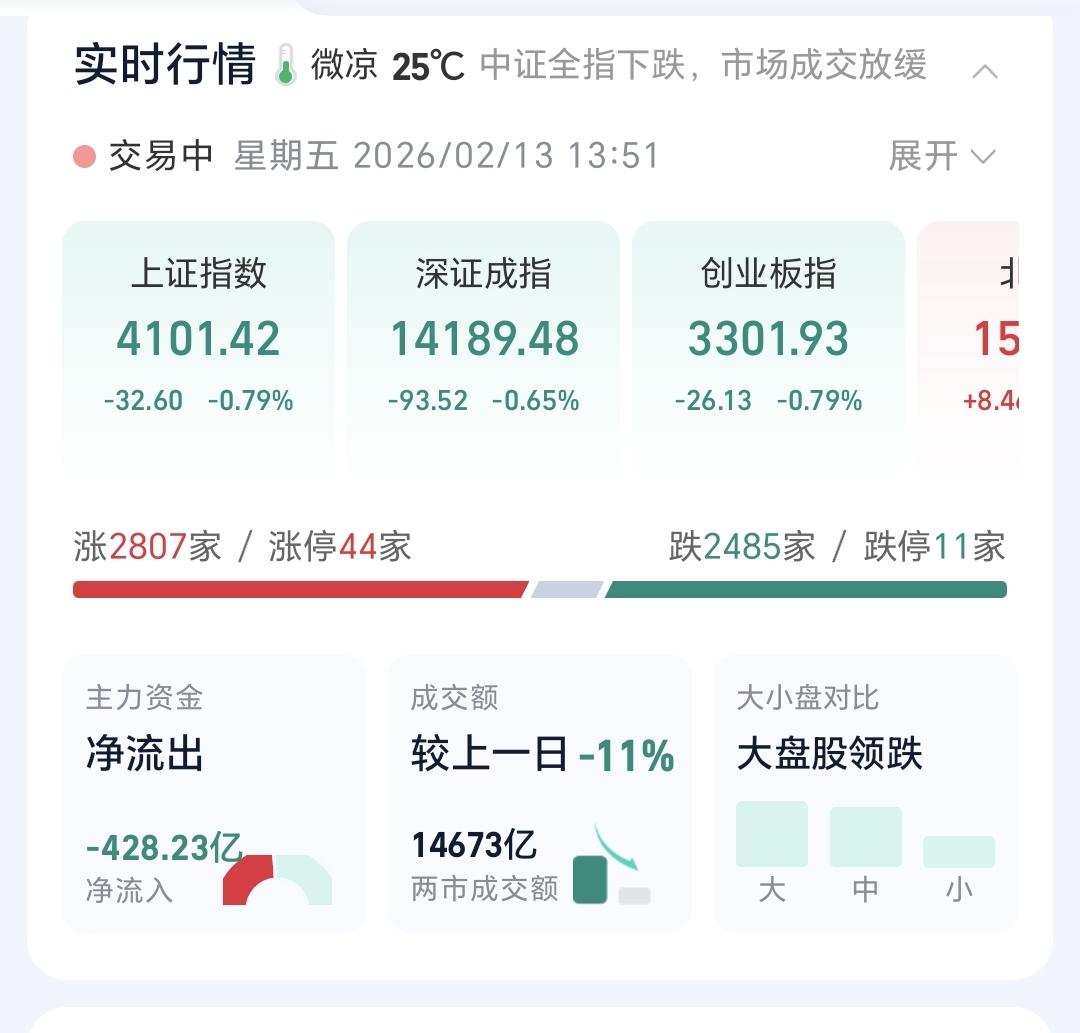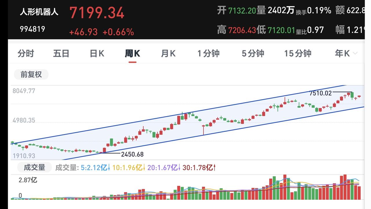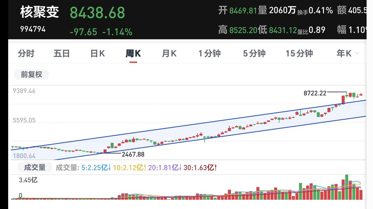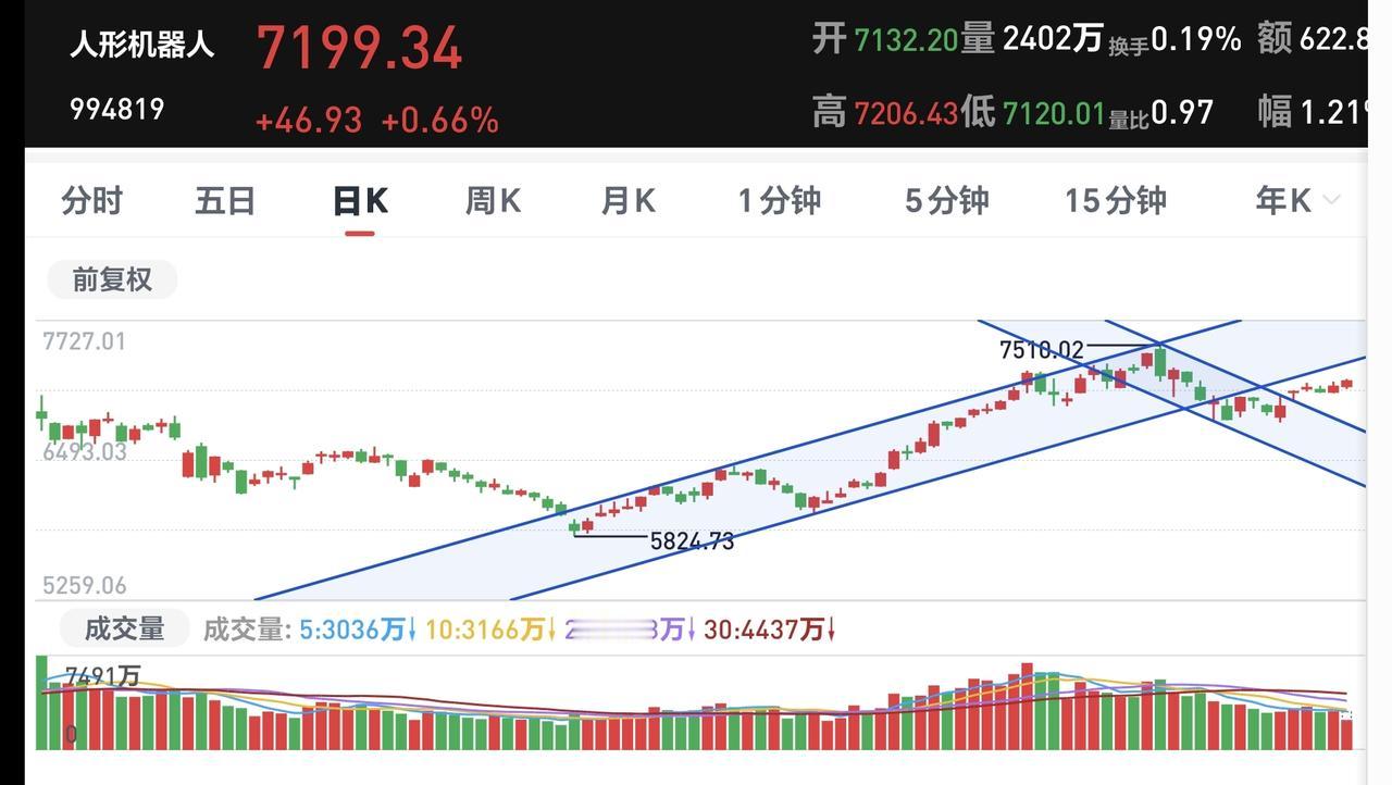 基金:机器人板块、cpo板块和可控核聚变板块 下午开盘以后还是小幅度震荡,三大指数都是小跌,创业板指下跌了0.77%,盘中点位302点,上证指数下跌了0.77%,盘中点位4102点。 下午反弹无力的主要原因还是成交量在萎缩,也就是资金不愿意进场,好的是黄色线高高在上,这样的情况下,即使没有上涨,也不会继续大幅度下跌。 现在的五天线位置是4123点,盘中点位4102点,是在五天线之下的震荡,收盘之前,观察能不能站到4126点之上,也就是收盘在五天线之上,如果还是收在五天线之下,技术上节后会继续调整,当然,这是没有考虑长假期间消息面的影响。 两市累计成交14673亿,相比于昨天同期缩量了11%,市场上涨2800多家,下跌2400多家,涨停44家,跌停11家,主力资金净流出428亿。 主力资金净流入最多的三个板块是:电子板块,信息技术板块,半导体板块,主力资金净流出最多的三个板块是:国企板块,中小创板块,有色金属板块。 整个基金市场,上涨3381家,下跌15256家,没有上涨幅度超过5%的基金,下跌幅度超过5%的2家。 看下面的截图7,这是今天加仓人数和减仓人数,今天加仓人数为6431324人,今天减仓人数为2343861人,加仓人数超过了减仓人数。 持有基金盘中估值亏损了2474元,亏损金额最大的三个板块是:创业板指,上证50板块,沪港深消费板块,盈利金额最大的三个板块是芯片半导体板块,新能源汽车板块,白酒板块。 1:机器人板块 机器人板块今天是上涨的,许多人对这个板块充满着憧憬,因为春晚上有机器人的表演,但我认为,谨防春节以后利好落地。 这个板块前几天上涨突破了日线级别短期下跌通道的上轨线,但突破以后并没有进行大幅度的上涨,而是在进行一个横盘偏向上的震荡,如果真的在节后有大的行情,大资金会在这个时候进场,但到现在为止,我没有看到这样的迹象。 机器人周线板块还是处于上涨通道中,这个板块的大方向是向上的,持有的人可以继续持有,除非跌破周线级别上涨通道的下轨线,才可以考虑要不要止盈出来观望。 2:Cpo板块 Cpo板块今天是大跌,但今天的下跌并没有跌破日线级别上涨通道的下轨线,短线持有的人可以继续持有,因为,这个下跌并没有改变日线级别的上涨趋势。 Cpo板块周线级别也是处于上涨通道中,在下跌跌破周线级别上涨通道下轨线之前,这个板块都是处于上涨趋势中,长线持有的人可以继续持有,除非这样的上涨趋势被改变。 3:可控核聚变板块 可控核聚变板块处于日线级别短期下跌通道中,最近是在这个下跌通道上轨线下方震荡,在突破这个下跌通道上轨线之前,都不要考虑进场,只有突破了这个下跌通道的上轨线,才可以考虑要不要进场。 可控核聚变板块周线级别处于上涨趋势中,现在是在上涨通道的上方震荡,短期的下跌都不影响这个板块长期的上涨趋势,长线持有的人可以继续持有。 今天是春节之前的最后一个交易日,其实还有几个板块需要讲解,我就不一一进行分析了,因为今天看的人也不多,这个时候很多人都已经忙着过年去了,今天究竟应该怎么办?我会在评论区留言,祝大家新年快乐,祝大家马到成功,祝大家马年发财。