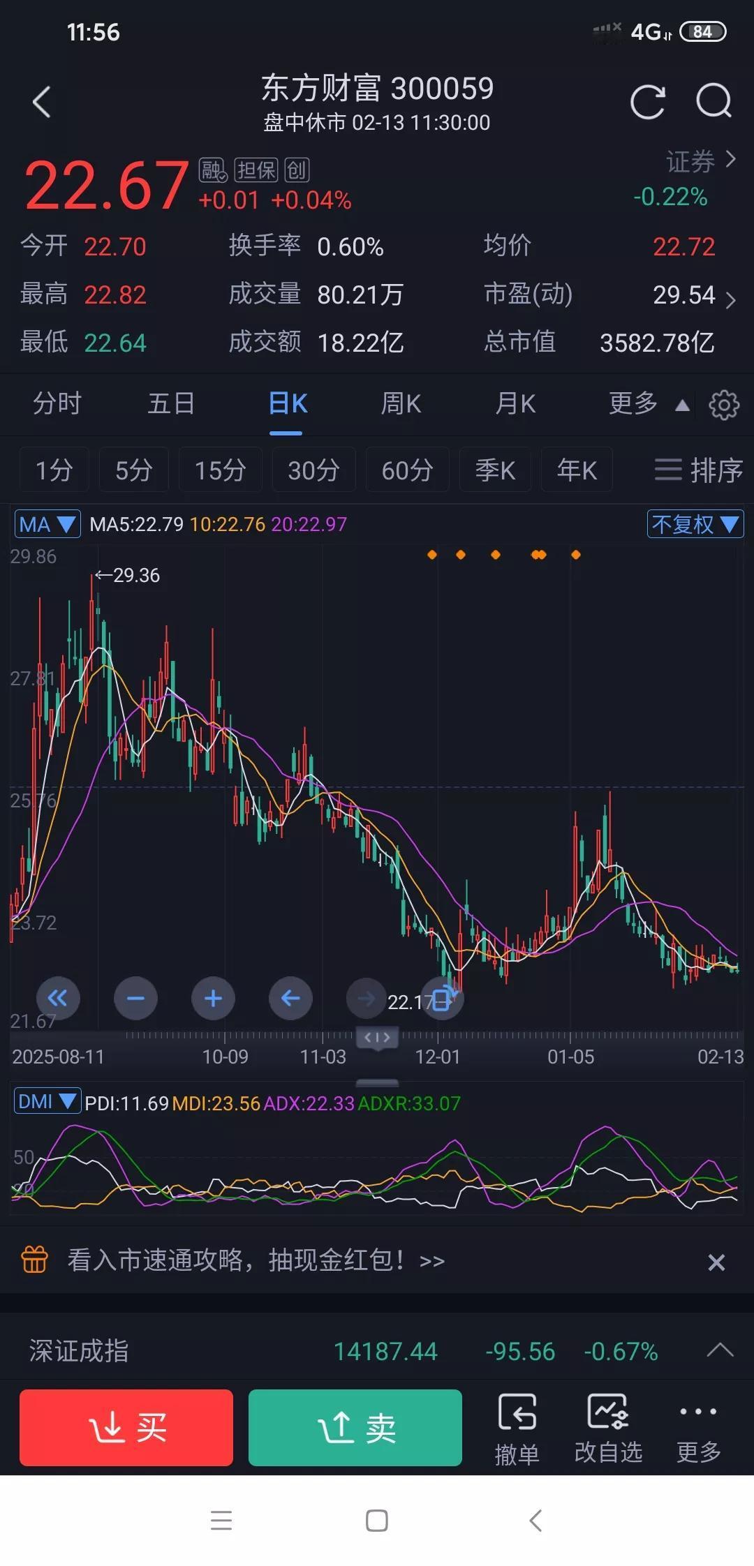 东方财富还值得继续持有吗? 高位深套;业绩好却不涨该何去何从?从高点一路下行,毫无像样反弹,去年还严重跑输大盘,可业绩明明大增啊! 一.先说现状:现价22.67,处于震荡磨底,底部没确认,没必要死扛。 二.为什么业绩好切不涨? 周期压制,东财是牛市旗手,跟成交量有很大关系,存量行情下资金抱团券商;资金分歧,短期资金流出,北向资金长期增持;情绪拖累,高位套牢盘重,一有反弹就抛压。 三.持有底气在哪里(不吹不黑) 基本面硬;估值不贵;机构看好 跌不动了: 四.到底应不应该继续拿?分人说清楚 1.短线想快赚:别拿!短期难大涨,节前以磨为主 2.中线波段(3-6个月):值得拿!等放量突破23元、企稳20日线,反弹空间打开 3.长线底仓(1年+):坚定拿!龙头+业绩+估值,行情回暖弹性最大。 五、给持有者的实操建议 守住22.4元支撑,不破就拿;破位减仓避险反弹看23.5-24.5元压力,分批做T降成本不追高、不满仓,分批布局更稳妥。 你是深套熬时间,还是轻仓等反弹呢?还是割肉换股?