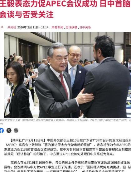 高市早苗终于盼到了?日高官与王毅外长握手破冰,中日或再见一面   2026 年 2 月 10 日,广州举行的 APEC 高官会上,一个简短的握手引发了中日两国的广泛关注。日本外务省经济局审议官渡边滋,在会议期间与中国外交部长王毅握了手,事后日方还特意对外透露了这个细节。   日本媒体纷纷用 “积极信号”“破冰” 来形容这次接触,甚至关联到 11 月深圳 APEC 峰会可能的中日首脑会面,这让不少人好奇,高市早苗政府是不是终于盼到了对华关系的转机?一次握手,真能撬动冰封的中日关系吗?   要弄明白这件事,得先说说这次握手发生的背景。今年中国是 APEC 东道主,广州高官会是首场重要多边活动,王毅外长在开幕式上明确表示要推进亚太合作,力促深圳峰会成功。   渡边滋作为日本经济领域的高官参会,本身就是为了经贸合作沟通,和王毅外长的握手,从外交礼仪上来说是正常的场合互动。但日方之所以特别强调这次握手,背后有自己的考量。   当下的日本,高市早苗政府刚在众议院选举中取得大胜,自民党拿到 316 席的绝对多数,彻底摆脱了少数执政的困境。高市早苗一直有推进对华对话的表态,9 日还公开说对与中方开展对话持开放态度。   但这位日本首相的政治底色很鲜明,是坚定的保守派,力推修宪、增加防卫预算,还曾发表过涉台错误言论。中方早就明确回应过,真正的对话得建立在尊重对方、恪守共识的基础上,嘴里喊着对话、手上却忙着对抗,这样的 “对话” 没人会接受。   中日关系能走到今天这一步,不是一天两天的事。两国是重要近邻,1972 年邦交正常化以来,靠着四个政治文件奠定的基础,各领域合作其实取得了不少成果。   2024 年中日贸易总额还有 3083 亿美元,中国是日本第三大贸易伙伴,日本也是中国重要的经贸合作对象,双方在文化、科技领域的交流历史也很长,现在还有 268 对友好城市。   这些年,中日领导人在 APEC、G20 等多边场合也保持着每年至少一次的会晤或通话机制,2025 年 10 月习近平主席还在 APEC 会议期间会见过高市早苗。   但要说 “冰封”,确实也有实实在在的分歧。高市早苗政府的右翼倾向让中方有顾虑,她想推动修宪让日本成为 “正常军事大国”,还计划收紧移民政策,这些主张都带有强烈的民族主义色彩。   更关键的是台湾问题,中日四个政治文件早就明确了相关原则,可高市早苗的涉台错误言论,严重触碰了中方的核心利益。中方多次要求日方撤回错误言论,恪守政治承诺,这是中日关系改善的前提。   再看这次握手,虽然被日媒炒作为 “破冰”,但本质上还是礼节性的接触。渡边滋的职务是经济局审议官,主要负责经贸领域的事务,这次沟通更多是围绕 APEC 框架下的经济合作。   真正能影响中日关系走向的,还是高层之间的政治互信,以及日方是否能拿出实际行动。从中方的态度来看,林剑发言人在 2 月 10 日就明确表示,日方如果真心想发展中日战略互惠关系,就要用实际行动展现诚意。   其实中日两国谁都离不开合作。日本经济需要外来劳动力,据预测到 2040 年劳动力缺口会达 1100 万,而中国是日本重要的贸易伙伴,“脱钩断链” 对双方都没好处。   这些年中日在环保、科技、产业链供应链上的合作基础还在,只要方向对了,合作空间很大。但合作的前提是尊重,不能一边想着赚合作的好处,一边在核心利益问题上挑衅。   高市早苗政府现在有了绝对的政治权力,不用再受制于其他党派,这既给中日关系改善提供了可能,也带来了风险。   如果她能平衡好日美同盟和对华关系,落实四个政治文件的承诺,停止在敏感问题上的挑衅,中日关系确实有机会缓和。但如果继续推进右翼议程,忽视中方的核心关切,就算有再多的礼节性握手,也很难真正打破僵局。   说到底,一次握手只是一个小小的互动,算不上真正的 “破冰”。中日关系要走出困境,关键看日方接下来的行动。   能不能撤回错误言论,能不能恪守政治承诺,能不能用实际行动展现对话诚意,这些才是决定关系走向的关键。11 月的深圳 APEC 峰会确实给中日首脑会面提供了机会,但能不能促成有实质意义的沟通,还要看双方能不能找到共识的基础。   对于普通人来说,大家都希望邻里之间能和平相处、互利共赢。中日两国一衣带水,合则两利、斗则俱伤是实实在在的道理。   但友好不是单方面的,得靠双方共同珍惜、共同维护。希望这次握手能成为一个积极的起点,让日方明白,真正的关系改善,从来不是靠媒体炒作出来的,而是靠一步一个脚印的实际行动做出来的。