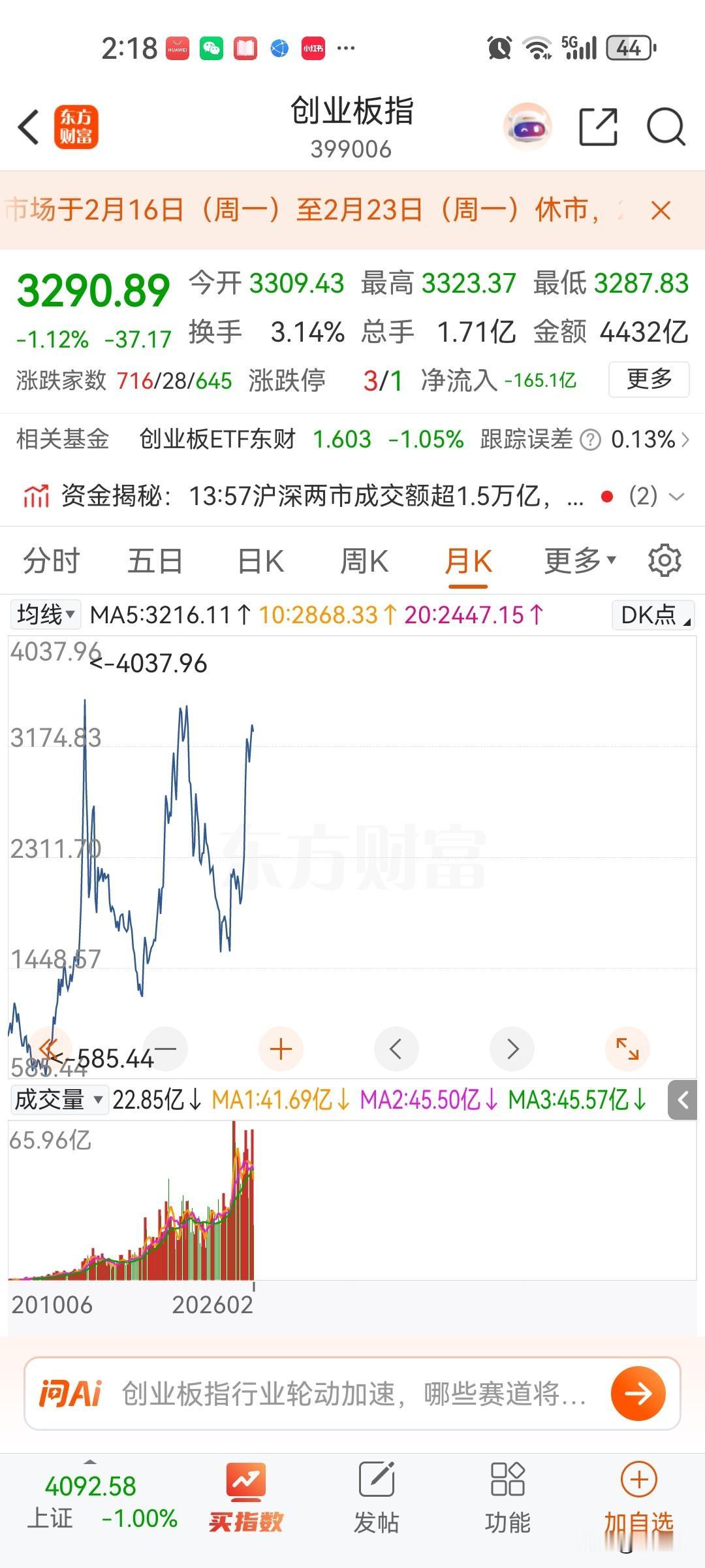 看创业板股市有可能真的见大顶,这个地方不能买指数不能买股票了