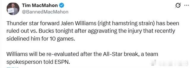 雷霆又遭重创! 杰威又伤了……昨天刚复出打太阳,20分钟12中11,28分,手感烫得像要把篮筐烧穿。然后第三节落地,腿筋不适,离场。今天官方宣布:全明星后重新评估!雷霆是真的天塌了!亚历山大sga都伤了!
