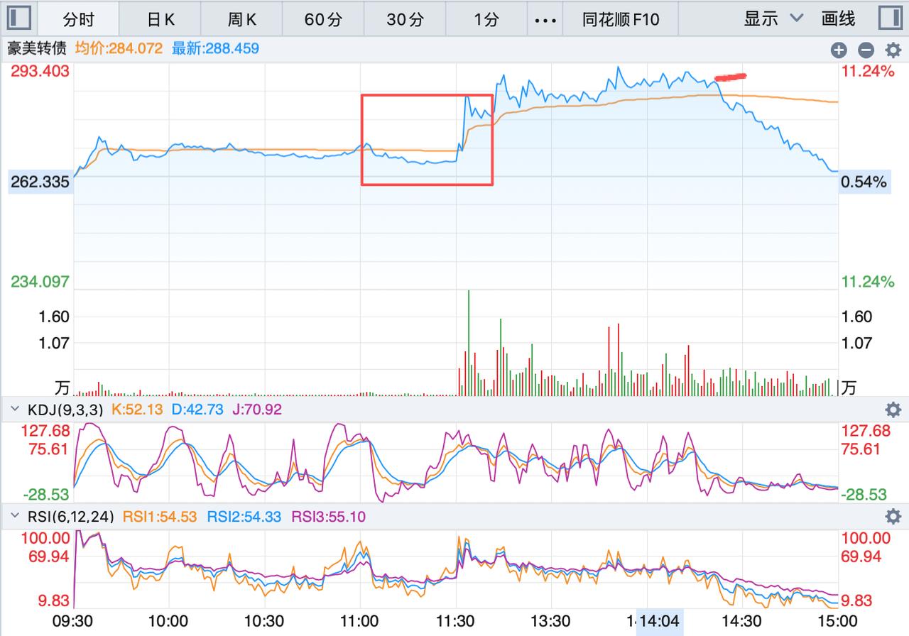 这是一支转债,交易是t+0的,今天参与的投资者,只要后半程还参与,基本都是亏损的,这就是t+0的威力,当散户执行t+0的时候,主力资金玩的很可能就是多日收益,如果散户只是看着波动玩,大的波形吃不到,小的波形容易迷失,最后欲罢不能的时候,就很容易中主力资金的招! t+0最怕的就是判断失误,该止损的时候不果断,该离场的时候还在贪婪,这就是人性,如果执行t+0,主力资金又是一个玩法!