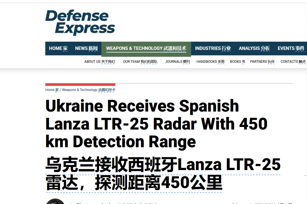 乌克兰接收西班牙Lanza LTR-25雷达,探测距离450公里。该系统价值3700万欧元,可增强对无人机、巡航导弹和弹道导弹威胁的预警能力。俄乌局势新进展全球武器装备盘点每天认识一件兵器 来源:防务快讯