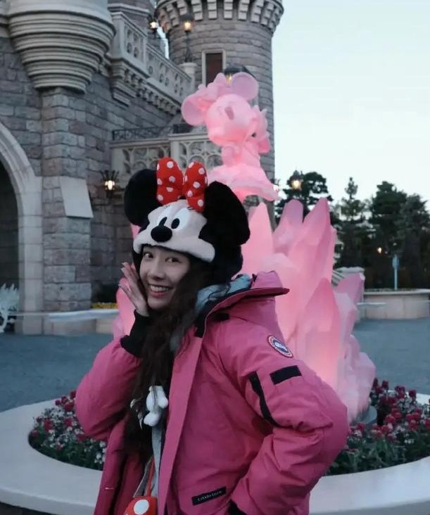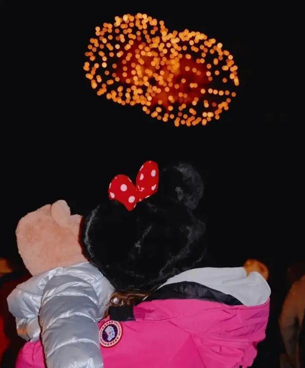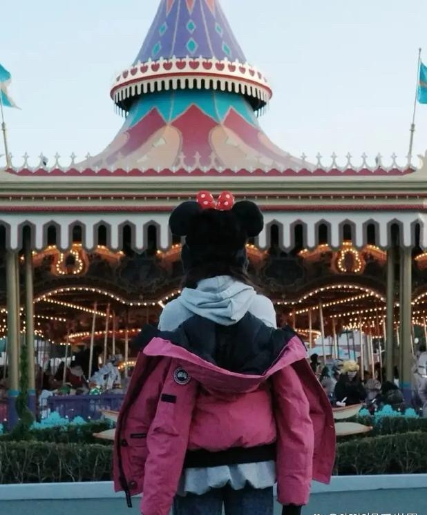 鬼鬼带女儿去迪士尼玩耍 母女俩相拥画面温馨