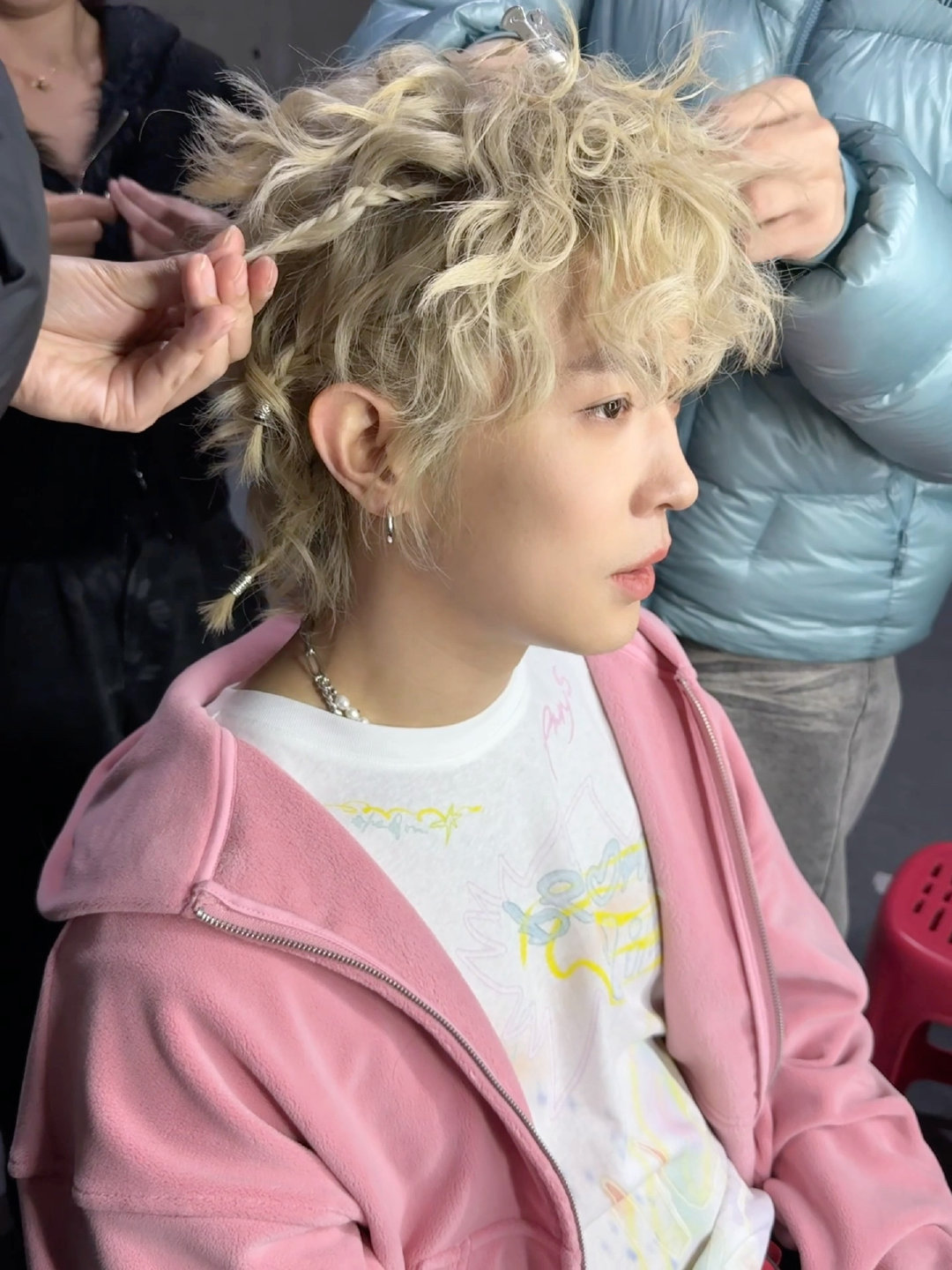 马伯骞金发巨型洋娃娃 马伯骞这头金发是吃可爱多长的吧?卷卷蓬蓬软fufu,配一张建模脸坐在小椅子上,像限量手办出街晒太阳。谁再说是硬汉我跟谁急,这明明是巨型洋娃娃。