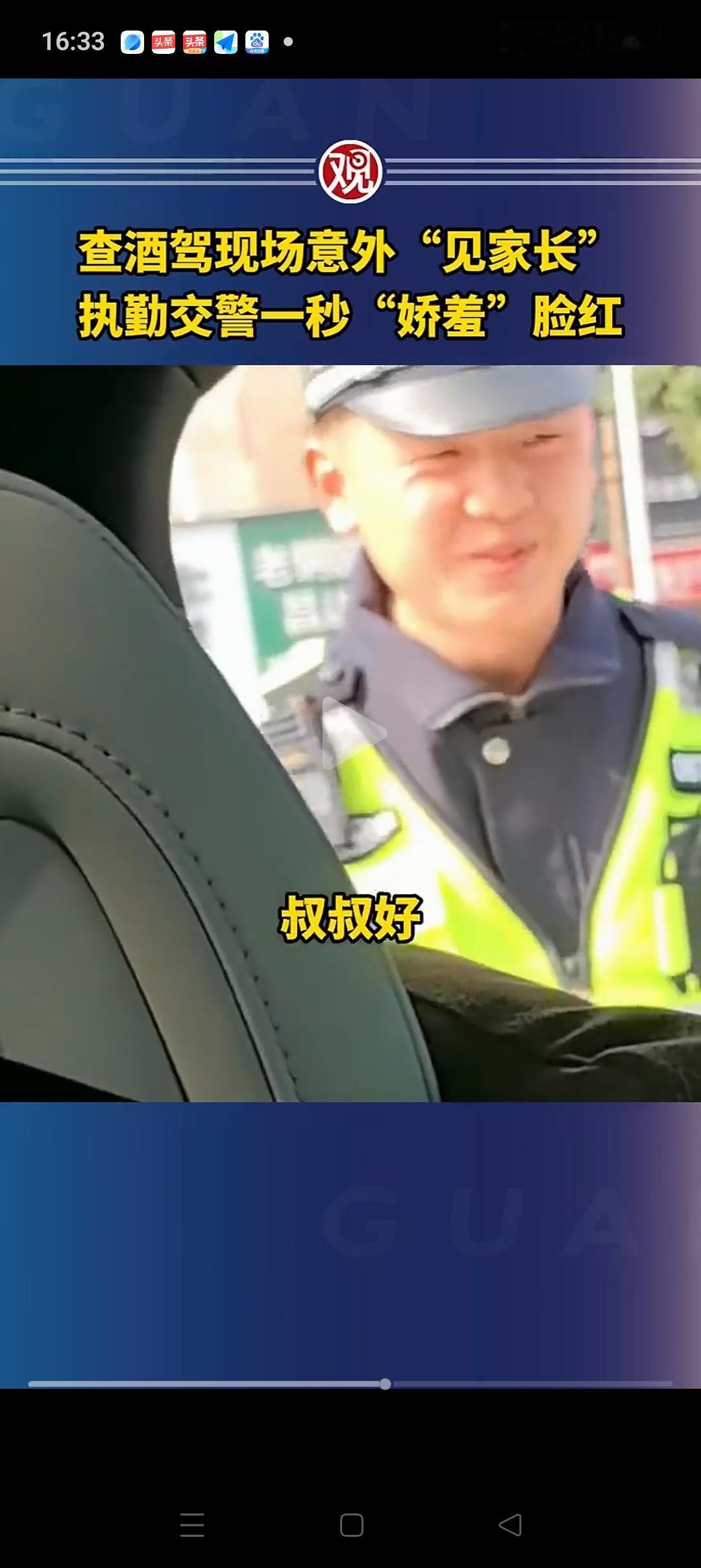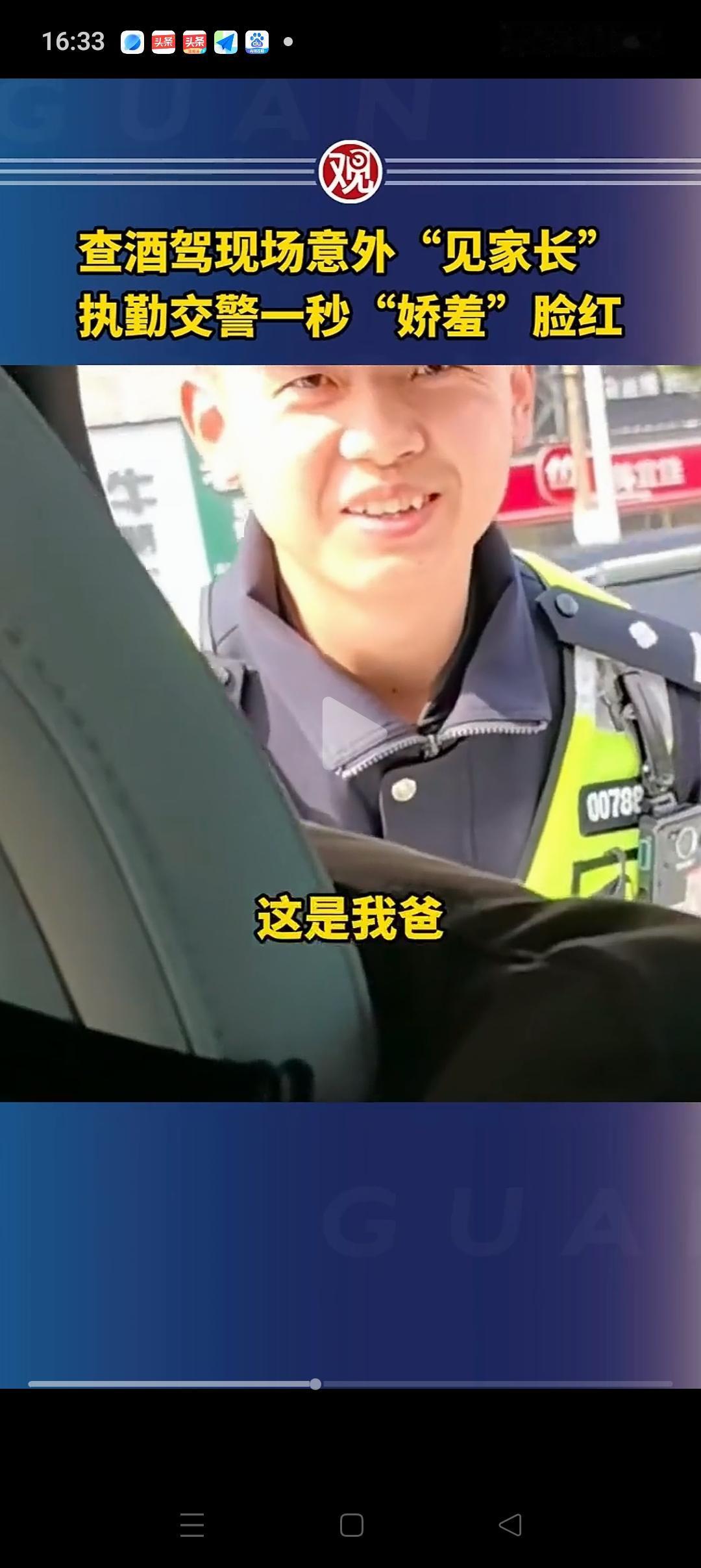“笑不活了[泪奔]”,湖北,一名交警查酒驾时,原本一脸严肃的让男司机配合吹气。不料他突然瞅到了车里熟悉的女友,便问道:你怎么也在这里?女孩说:这是我爸啊!小伙立马变得腼腆了起来,叫了一声“叔叔好”后,就让他们离开了。 事后当女孩问起老爸,这个小伙还满意吗?老爸也没说话,直接竖起了大拇指,显然非常满意。网友:这一看就有正式编制,能不满意吗? 有了这一段巧遇,估计下次小伙正式上门吃饭时。当岳父说:麻烦把这一瓶白酒吹了,小伙可能也不好拒绝。[捂脸] 这么年轻就有了正式编制,又长的阳光帅气,难怪第一次见面岳父就直接竖起了大拇指[赞] 不得不说,岳父的眼光不错,毕竟这份工作在哪里都吃香呢,大家说对吧。。。