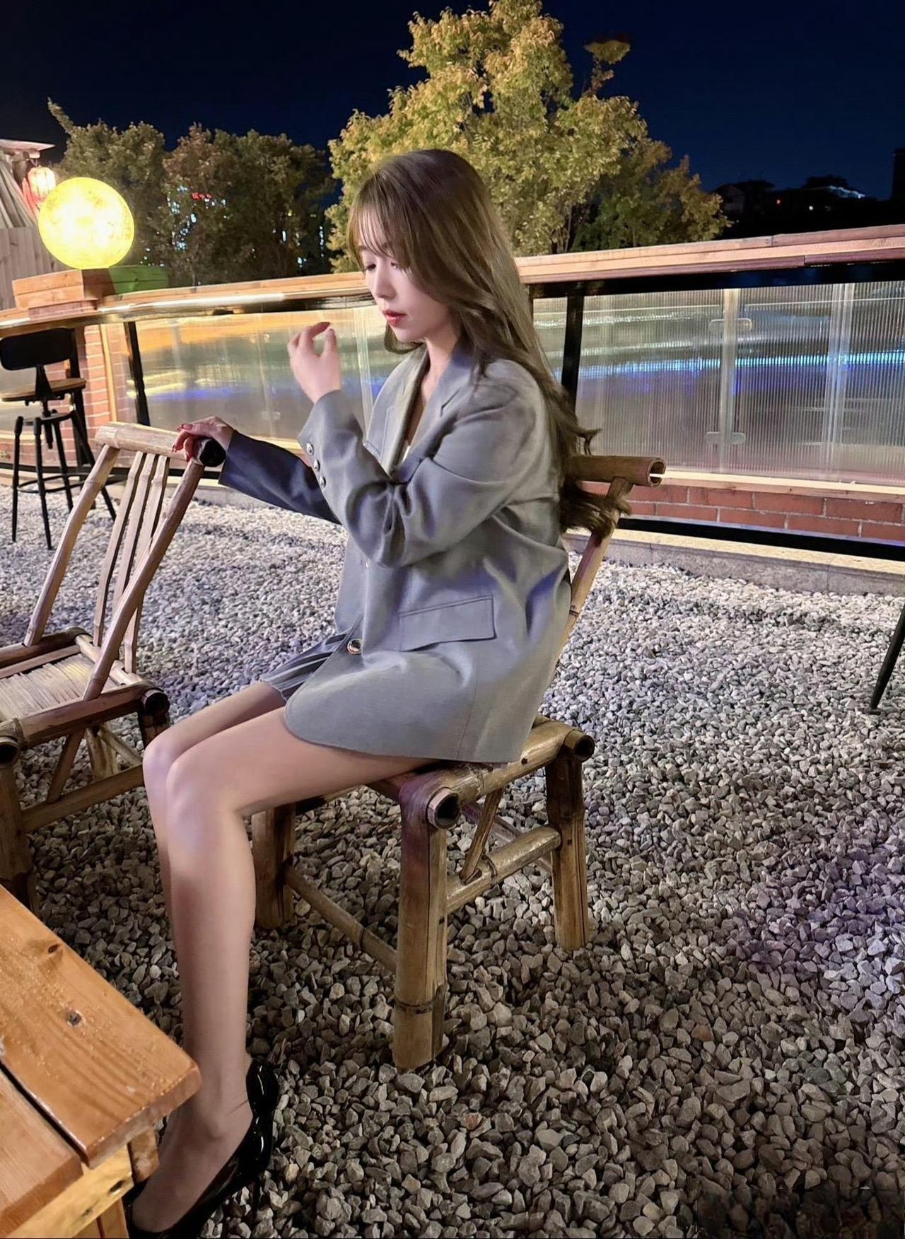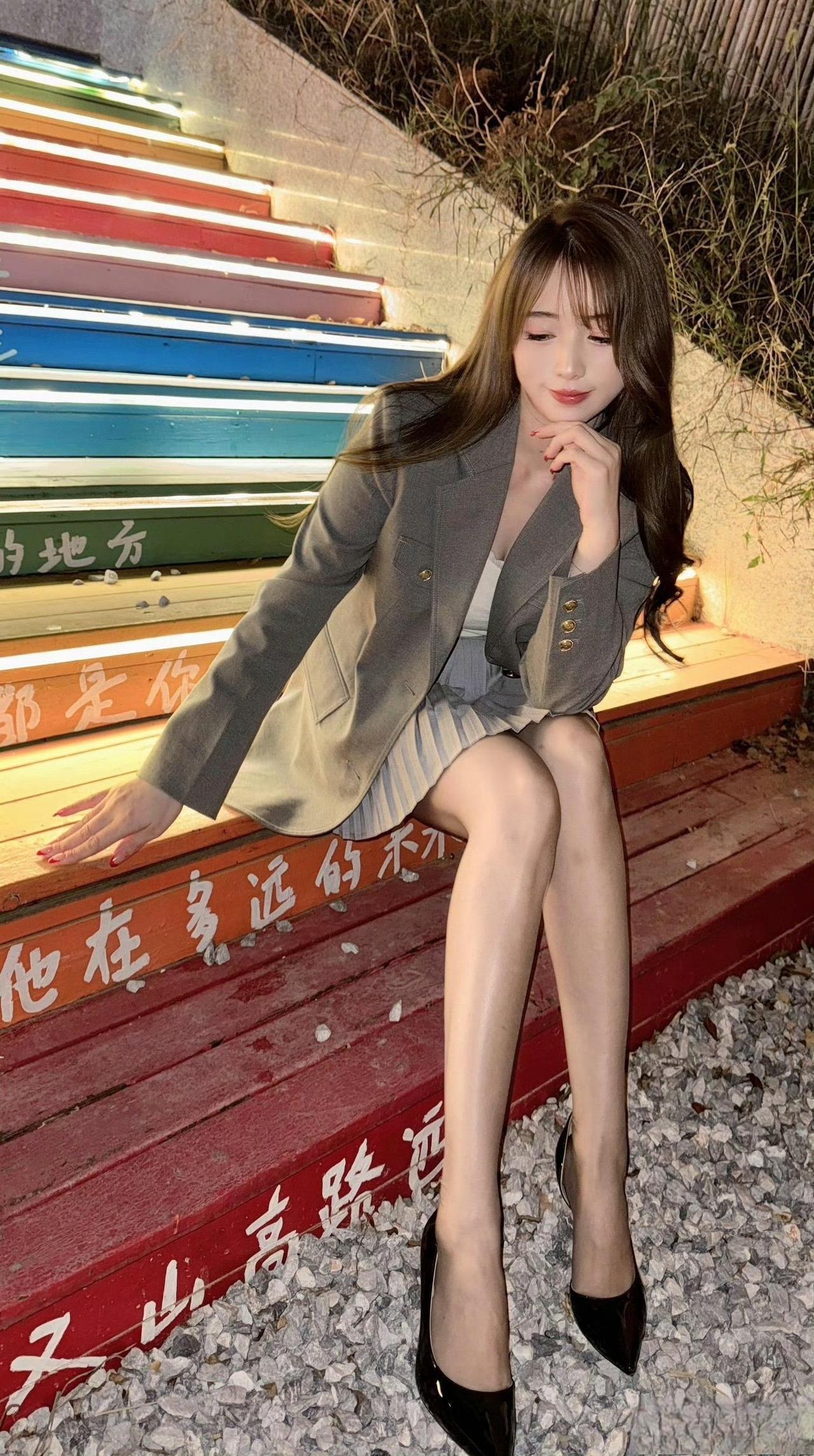 这套灰调西装套装好有“轻熟甜飒感”!宽松西装+百褶短裙的组合,既保留了西装的利落,又用百褶裙添了柔美,内搭浅色吊带刚好平衡了帅气与精致,夜游庭院的氛围里显得又美又松弛~灰色西装裙子