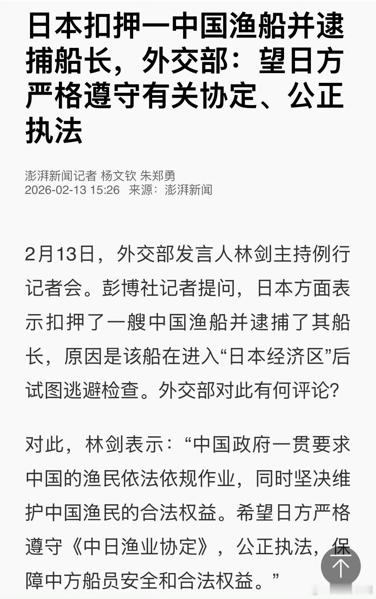 外交部回应日本扣押中国渔船
