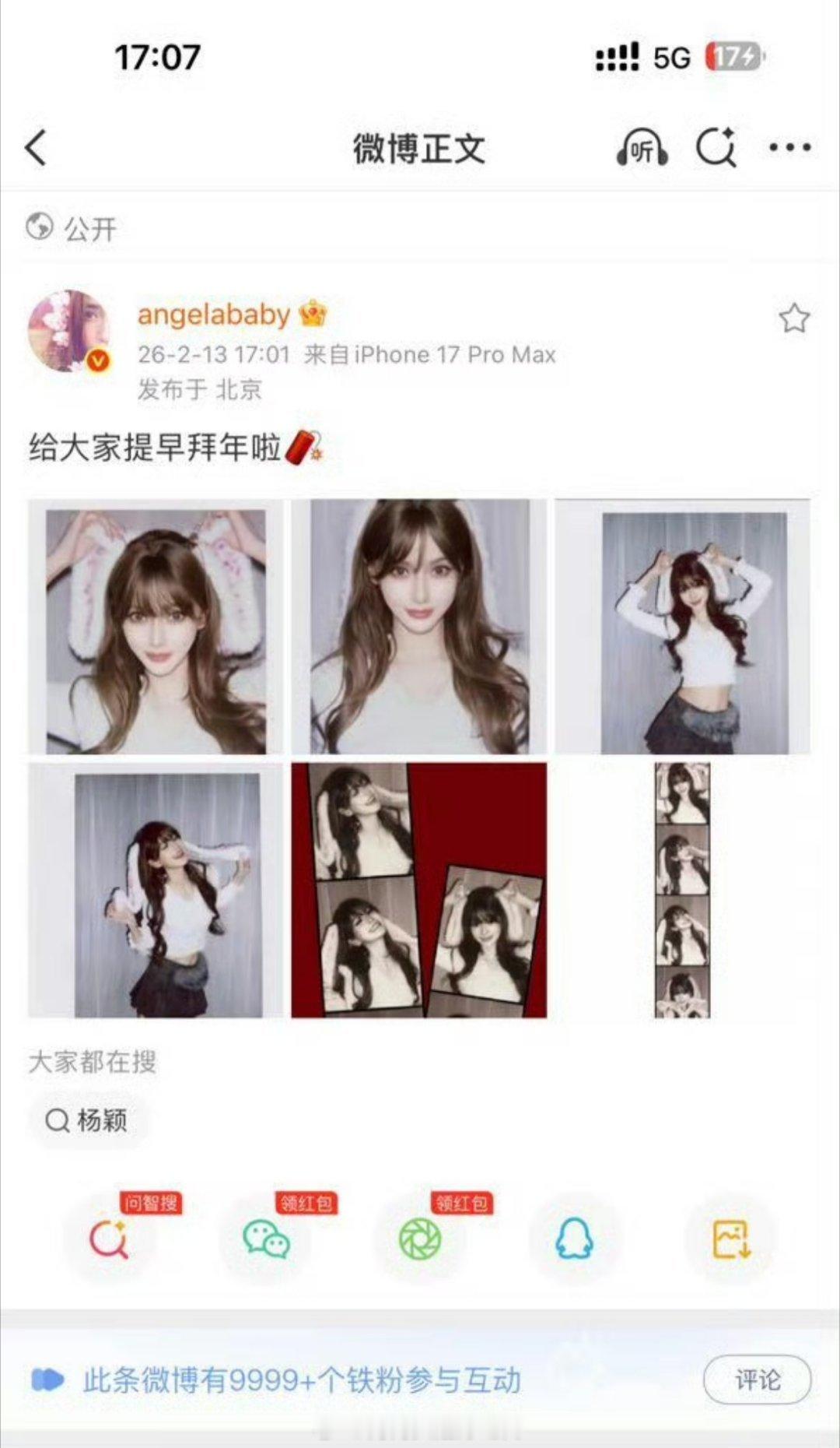 angelababy今日营业铁粉6min破9999+鼻姐脸在江山在