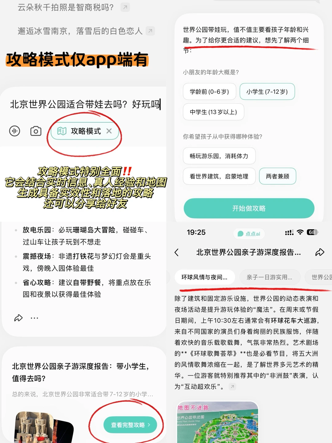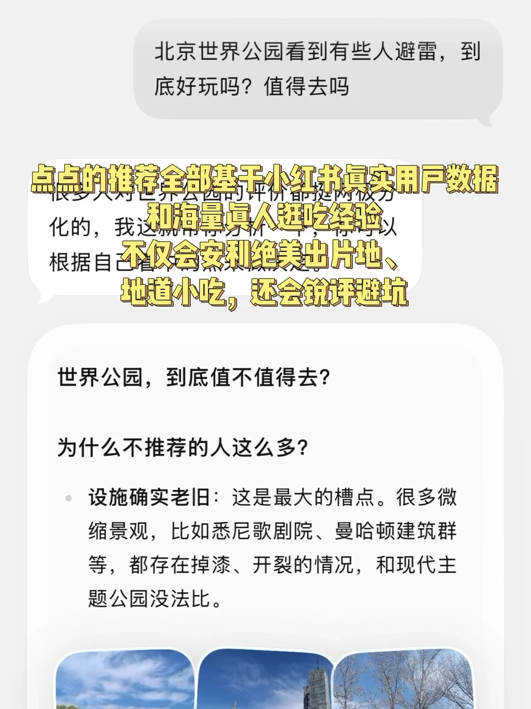 ✅ 超贴心:所有推荐全基于海量真实旅行数据,不仅会安利绝美出片地、地道小吃,还会锐评避坑,优点、避雷都会告诉你,连“带娃怎么玩”“下雨天备选方案”都能考虑到,像有个本地朋友在帮你规划
