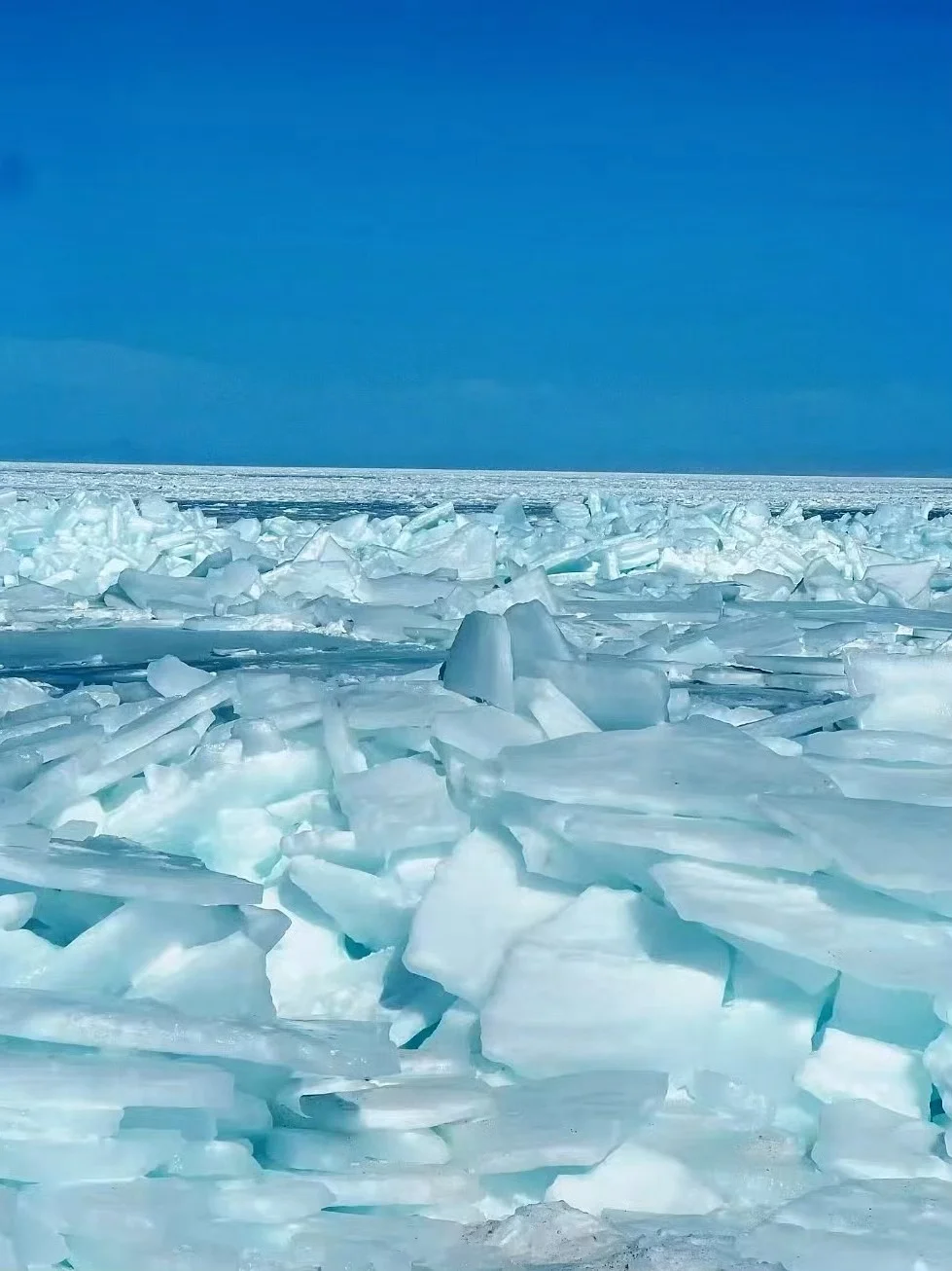 4.青海湖冰面绝对不要踩非指定区域!冰层厚薄不一,亲眼看见有人踩裂