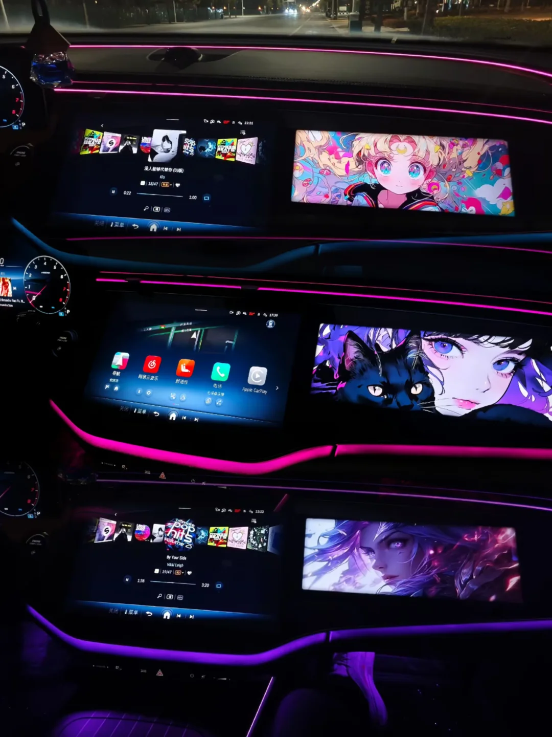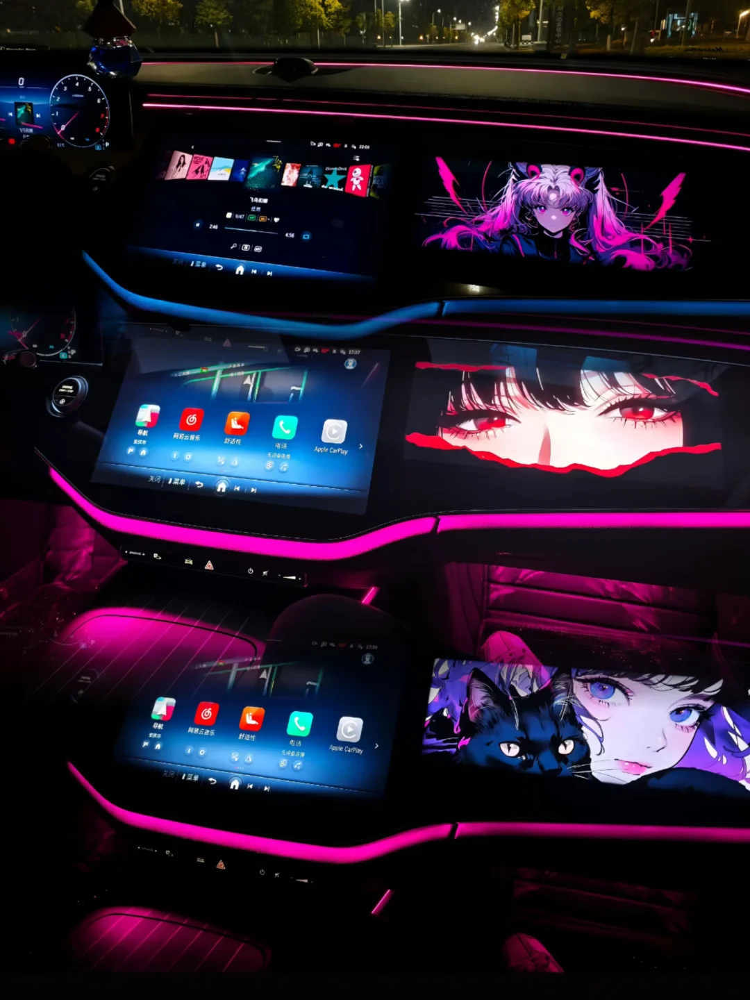 E300内饰封神现场💥 氛围灯渐变氛围感拉满🌈 副驾大屏科技感爆棚🖥 灯光+屏幕双buff加持✨ 随手一拍都是大片📸 夜晚出行仪式感直接拉满🌟