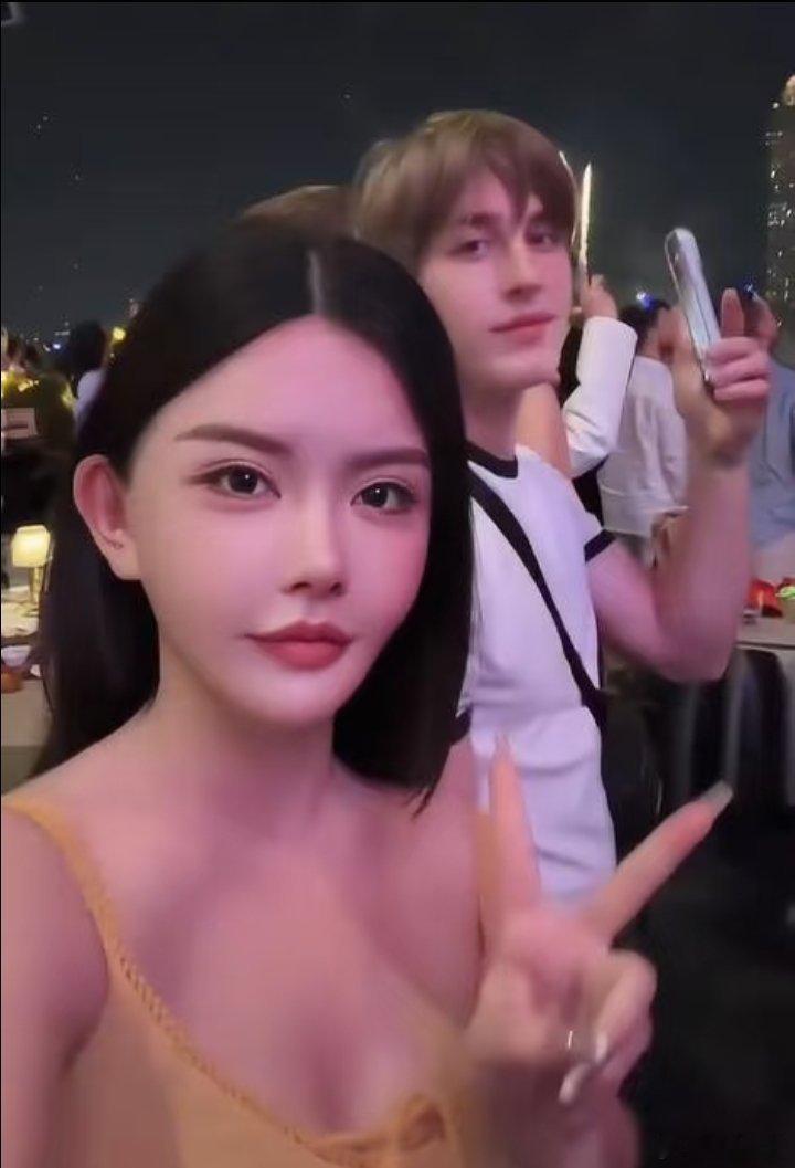 张天爱跟素人合影,胯真的好宽,大宅院似的