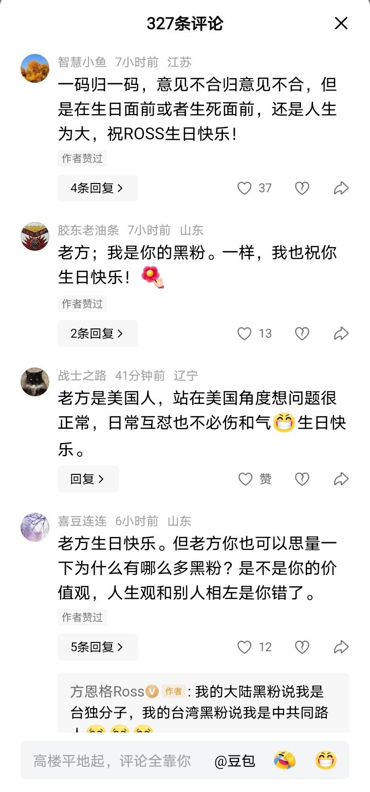 知名网络带路党美国人方恩格, 说今天生日, 中国网友纷纷送上祝福, 评论区看到了中国人的善良、包容、大度、格局!