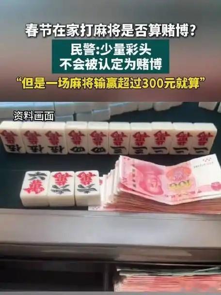过年打麻将一场输赢超300算赌博!过年打麻将一场输赢超300算赌博 近日,呼和浩特民警回应春节打麻将是否算赌博:少量彩头不认定为赌博,但若一场麻将输赢超300元则会被认定;炸金花、推对子等无任何娱乐性质的活动,只要参与一律认定为赌博。