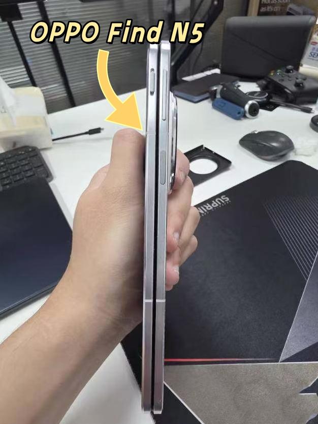 苹果拿什么赢?用了一年的折叠屏还很香 怪不得苹果要把📱Find N5拿去做研究,看看我这用了快一年的Find N5~机身确实薄,而且折痕控制也不错,铰链折叠也很丝滑,目前用着没啥问题(也可能是我同事保护的好... 👀不过听说春节后Find N6就要来了,估计又有新的技术,要整👉视觉无折痕,不知道跟苹果折叠屏对比谁赢? 折叠屏苹果数码爱好者OPPO Find N6