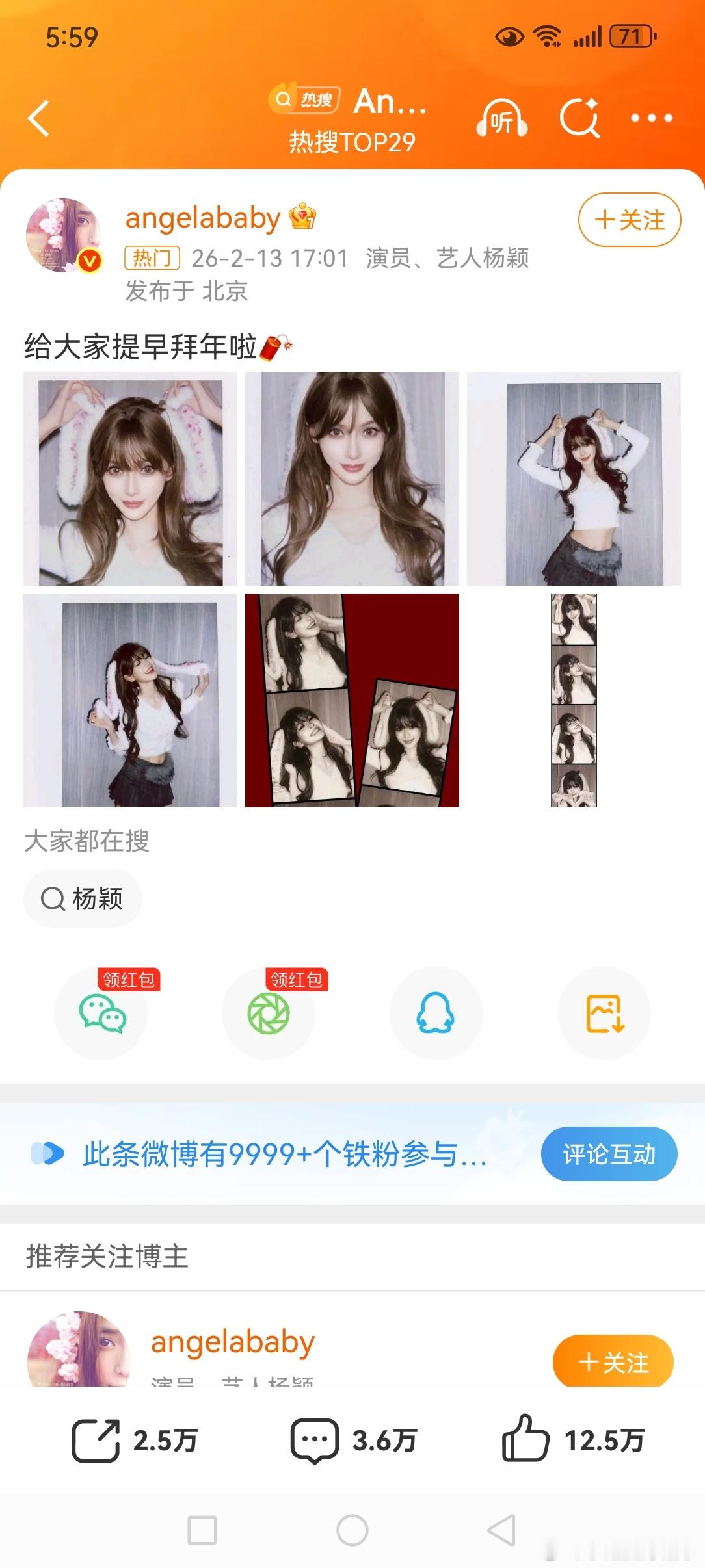 Angelababy兔耳朵撕拉片,给大家拜早年了。