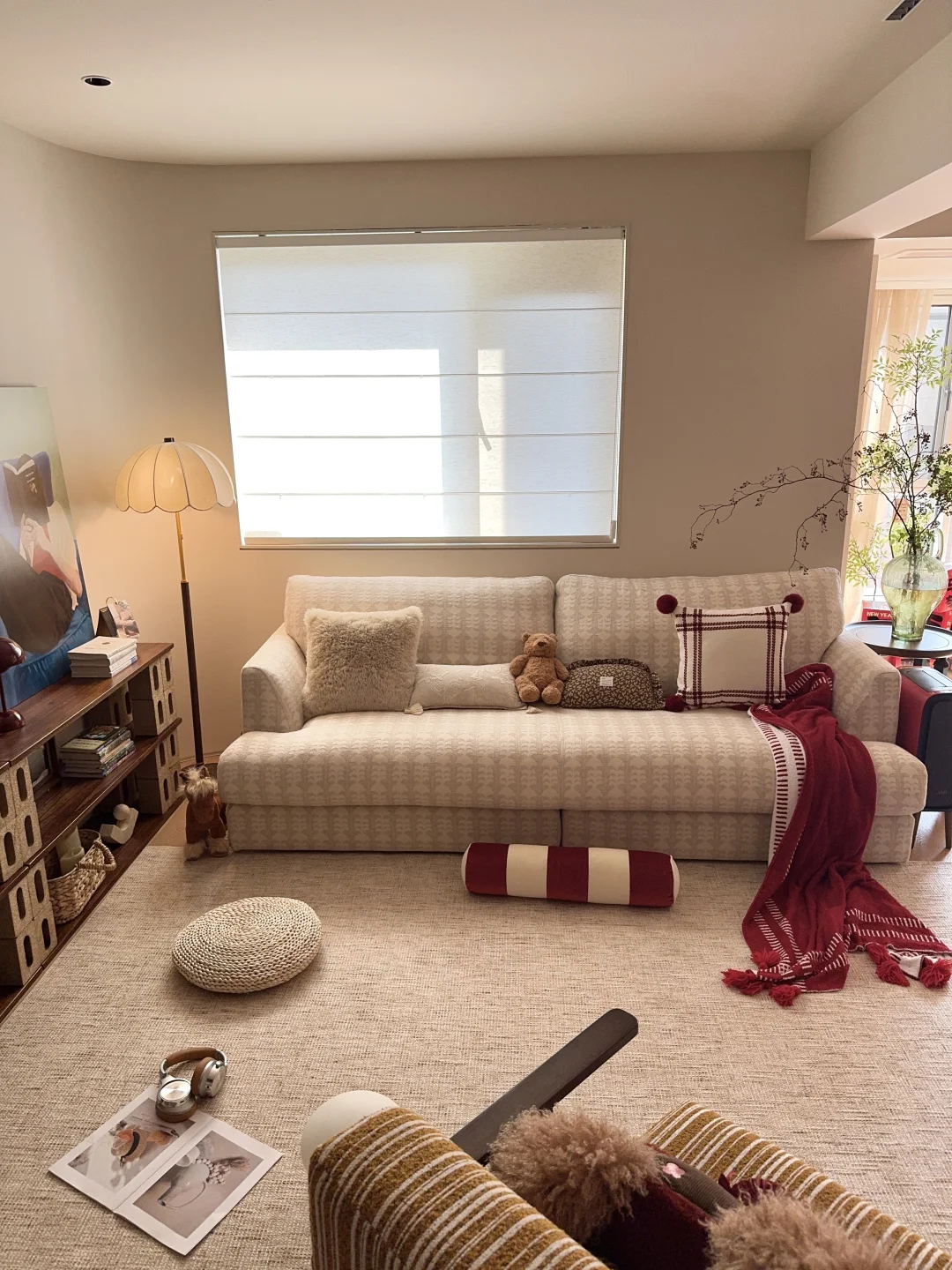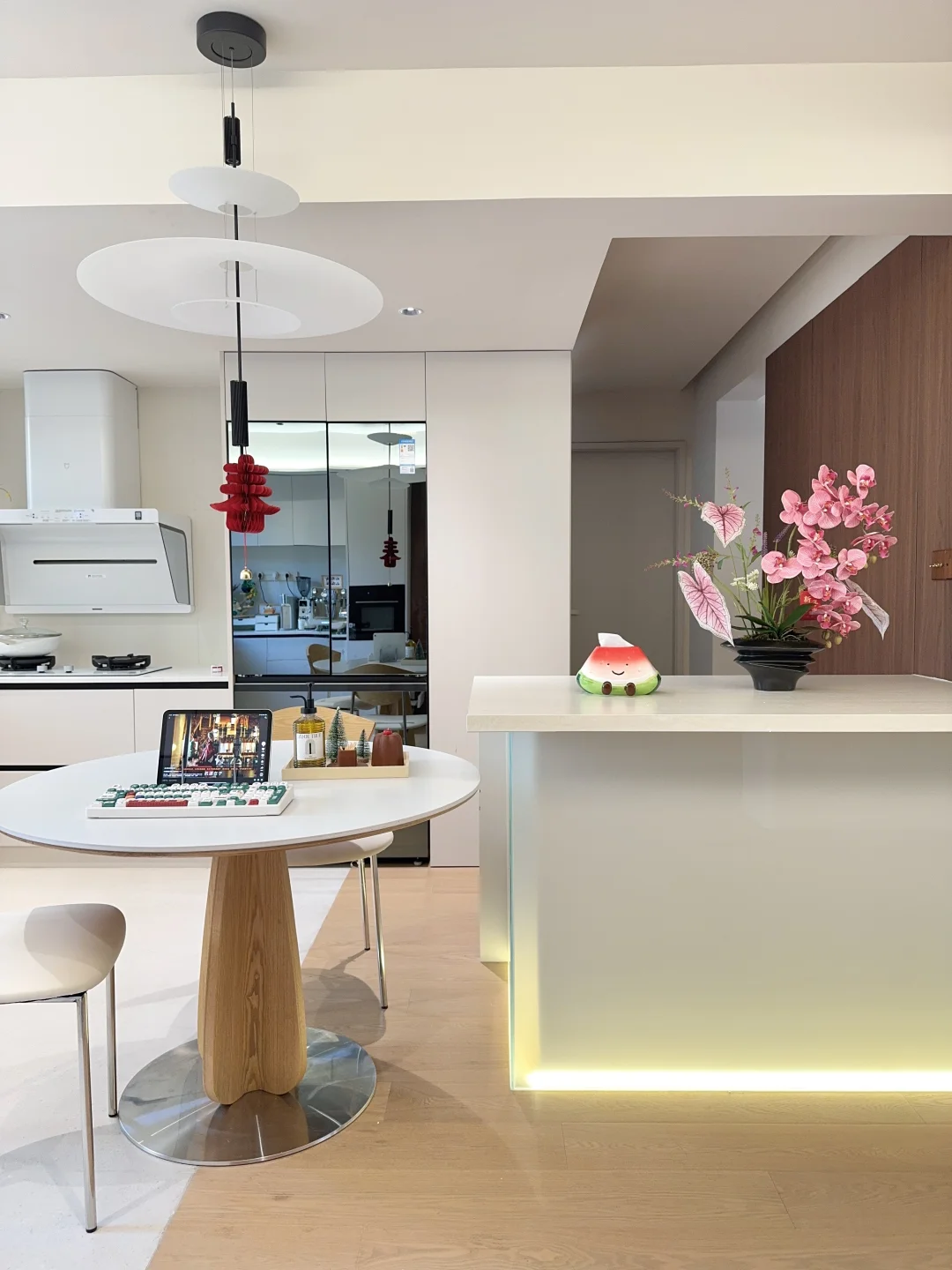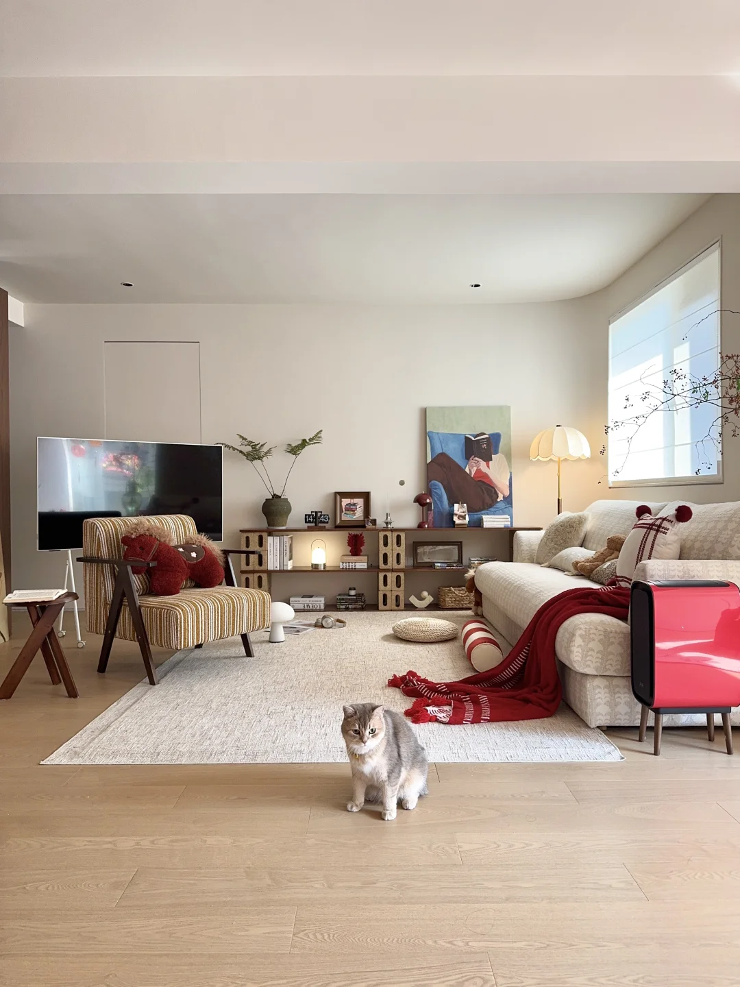一点点打磨出来的家,没有华丽的堆砌,全是我喜欢的模样。圆餐桌旁摆着我爱的小摆件,铺上暖暖的地毯,暖乎乎的奶油调打底,点缀新年的红🧣,阳光洒进来时,连空气都裹着温柔。