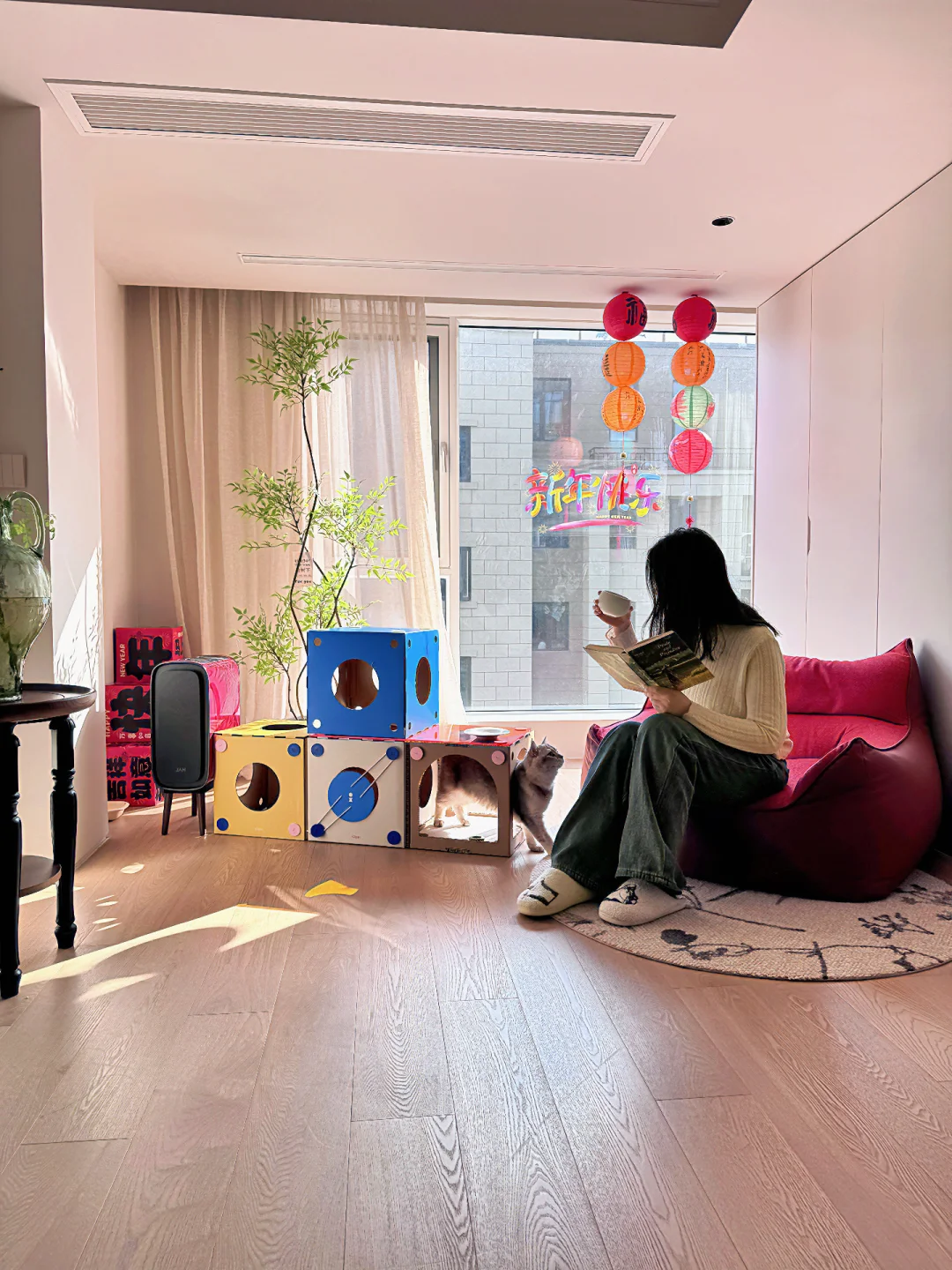 窝在懒人沙发上晒太阳,看着孩子们在客厅追跑,猫咪在猫窝旁伸懒腰🐈,这一刻突然觉得,人生最好的状态不过如此。