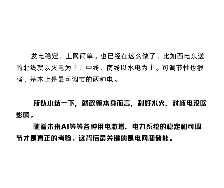 所以小结一下,政策本身而言,利好水火,对核电没啥影响。