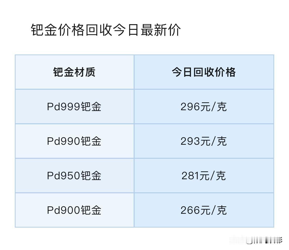 快看!(2026年2月13日)铂金、钯金报价下跌了!以及铂金、钯金回收报价也下跌了! 那么先来看看!铂金各品种回收报价为多少钱一克了? PT999铂金回收价格415元/克,PT990铂金回收价格410元/克,PT950铂金回收价格394元/克,PT900铂金回收价格373元/克。 同昨天(2月12日)不同品种铂金回收报价相比较,今天各品种铂金回收价格都整体下跌了。 PT999铂金、PT990铂金回收价格各下跌了25元/克,PT950铂金回收价格下跌了24元/克,PT900铂金回收价格各下跌了23元/克。 再来看看!钯金各品种回收报价为多少钱一克了? Pd999钯金回收价格296元/克,Pd990钯金回收价格293元/克,Pd950钯金回收价格281元/克,Pd900钯金回收价格266元/克。 同昨天(2月12日)不同品种铂钯金回收报价相比较,今天各品种钯金回收价格都整体下跌了。 Pd999钯金回收价格下跌了17元/克,Pd990钯金、Pd950钯金回收价格各下跌了16元/克,Pd钯金回收价格下跌了15元/克。 贵金属今日价格走势分析:2026年2月13日,黄金白银大跳水,现货黄金从5000美元/盎司上方突发断崖式下跌,30分钟内跌幅近200美元,一度跌破4900美元关口,最低下探至4877.75美元/盎司,随后回升至4950美元附近,跌幅超2.00%,跌破了本周以来5000-5100美元/盎司的整理区间。现货白银及纽约期银跌破80美元关口,最低下探至74.5美元,随后回升至76美元附近,短线下跌8美元,跌幅超9.00%。关注今晚即将公布的美国1月CPI通胀数据。 截至04时15分,现货黄金下跌2.85%至每盎司4937.5美元,现货白银下跌9.8%至每盎司75.76美元,现货铂金下跌5.54%至每盎司2018美元,现货钯金下跌4.47%至每盎司1634.3美元。黄金实时价格1097元,白银实时价格18.6元,铂金实时价格455.3元,钯金实时价格366.6元。 注意:铂金回收有这以下4个知识点,特别的重要,谨防上当吃亏。 第一,铂金回收是不需要发票和以前的购买凭证的。如果有人跟你说因为没有发票要扣你手续费,那他一定是在坑你。 第二,铂金回收是没有折旧费一说的,不管你是戴了几十年还是刚刚买的,回收的时候只看重量和纯度,只要纯度是3个9以上的,回收价格都是一样的。 第三,卖之前一定要知道自己首饰的精准克重,以防被其他人偷秤。 第四,铂金回收就是按照当天的国际金价减个几块钱一克回收,所以要提前查一下当天的国际金价。 只要注意这4点,根本没有人能够坑得到你。 最后说声,所有信息,都只是提供参考价值! 投资有风险,理财需谨慎! 铂金回收行情 铂金价格 铂金回收价 铂金价格波动 白银铂金回收 铂金行情分析 铂金钯金价格
