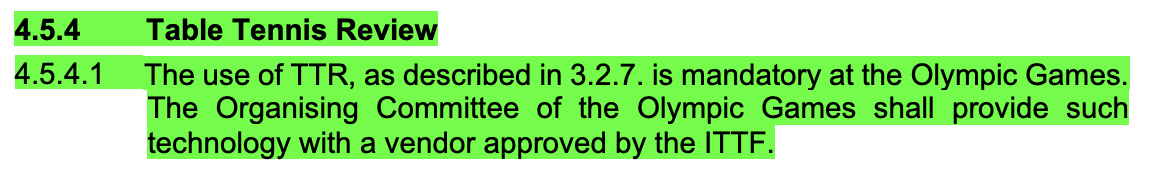2026ITTF手册更新丨TTR变更内容【奥运会强制使用TTR】奥运会强制使用TTR技术。奥运会组委会应通过国际乒联认可的供应商提供该技术。