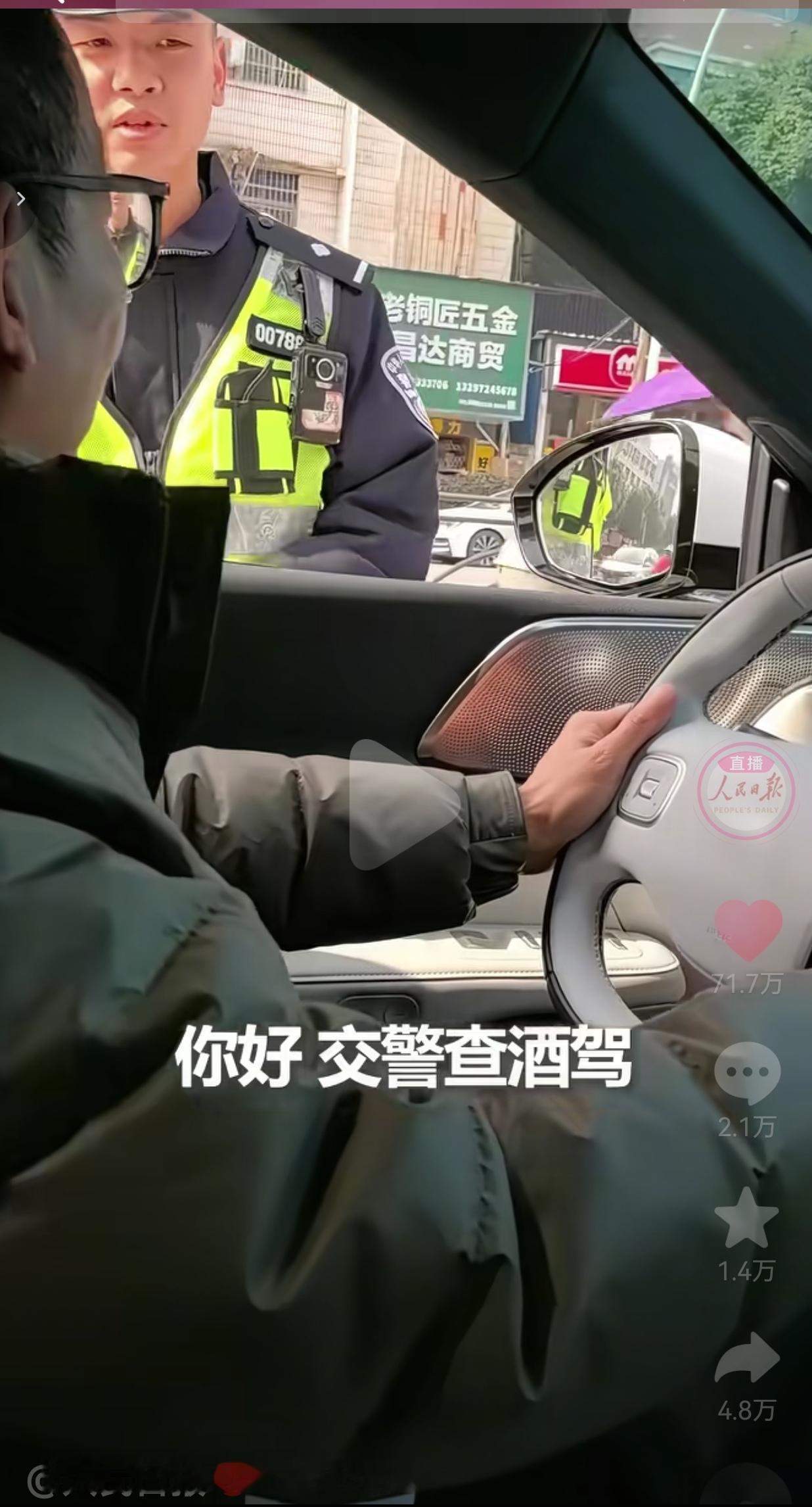 查酒驾查到老丈人?真的是无巧不成书呀!近日,湖北黄石,一男子开车带着女儿去超市买