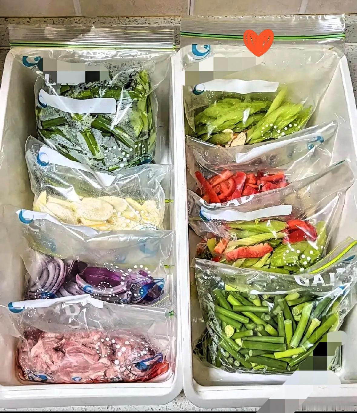 今天去儿子家吃午饭,刚一打开冰箱,我直接惊讶到了! 本以为年轻人上班忙,冰箱里不是外卖就是剩菜,没想到整整齐齐,全是分装冷冻好的食材:冷冻西红柿、豆角、青椒、虾仁、肉片、菌菇,连切好的葱姜末都单独装袋,分门别类摆得明明白白。 蔬菜、肉类、虾仁都分好装好,连葱姜末都单独打包,分类摆得清清楚楚。 儿子说,现在天天带饭,早上时间紧,以前现做总手忙脚乱,现在周末花一小时备好一周的量,吃啥拿啥,不用解冻直接炒,方便又省时间。 中午儿媳十分钟就做出三道菜,干净又好吃。 真的不得不感慨,现在的年轻人不是不会过日子,而是过日子的方法更聪明了。 原来不是年轻人不会过日子,是我们老一辈的习惯跟不上了。 这样做饭省时、不浪费、冰箱还干净整洁,匆忙的工作日也能吃上热乎家常菜,真是又聪明又省心的生活小智慧!