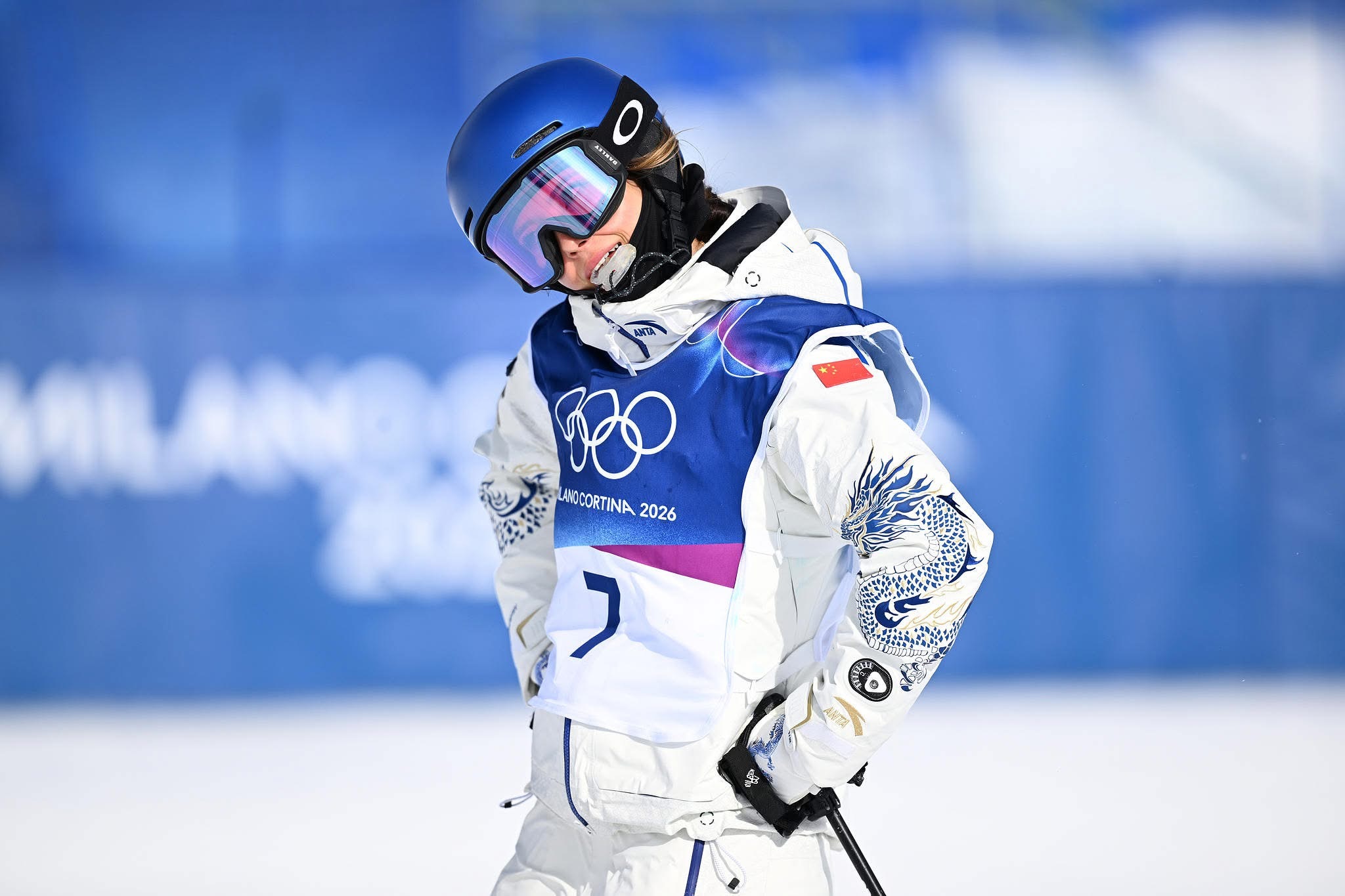 米兰冬奥会自由式滑雪女子坡面障碍技巧预赛,中国选手谷爱凌第二个出场,但她出现失误